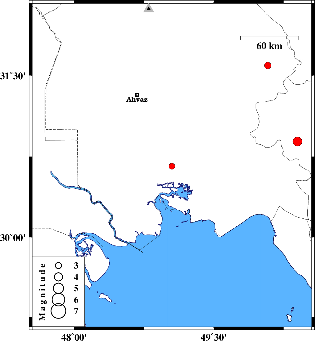 | 2007/04/23 | 09:04:53.5 | 12:34:53.5 | 30.66 | 49.05 | 34 | ML:3 | 19 km North-West of Bandar-e mahshahr, Khoozestan Province | ||