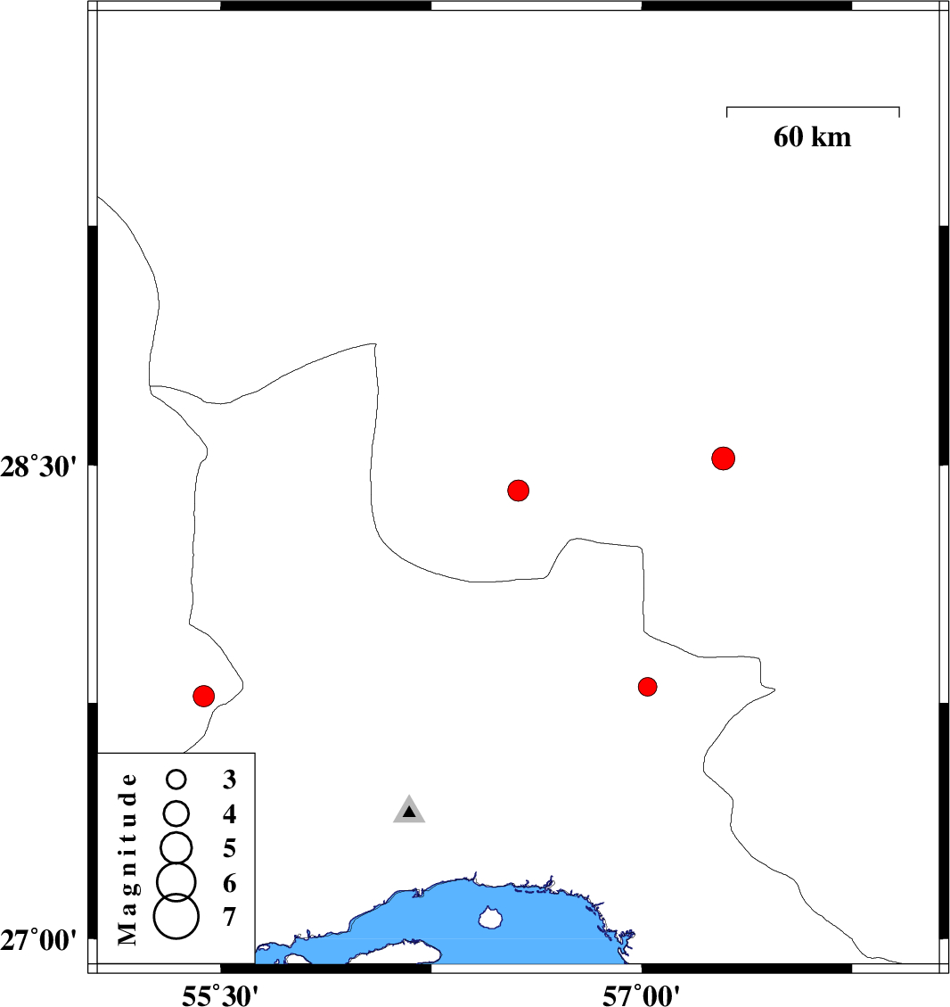 | 2007/06/23 | 11:52:03.4 | 15:22:03.4 | 28.42 | 56.56 | 7 | ML:3.4 | 65 km North-East of Hajiabad, Hormozgan Province | ||