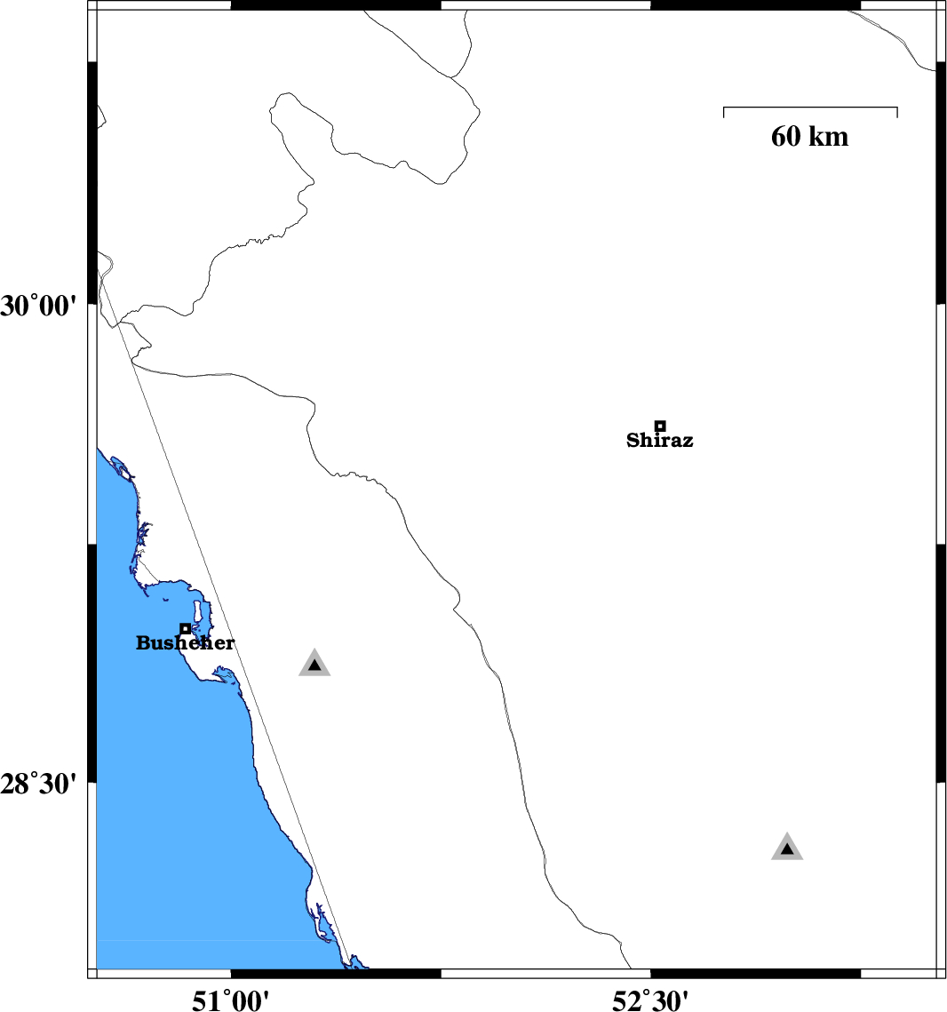 | 2007/04/17 | 12:20:39.4 | 15:50:39.4 | 29.46 | 52.21 | 18 | ML:3 | 35 km South-West of Shiraz, Fars Province |