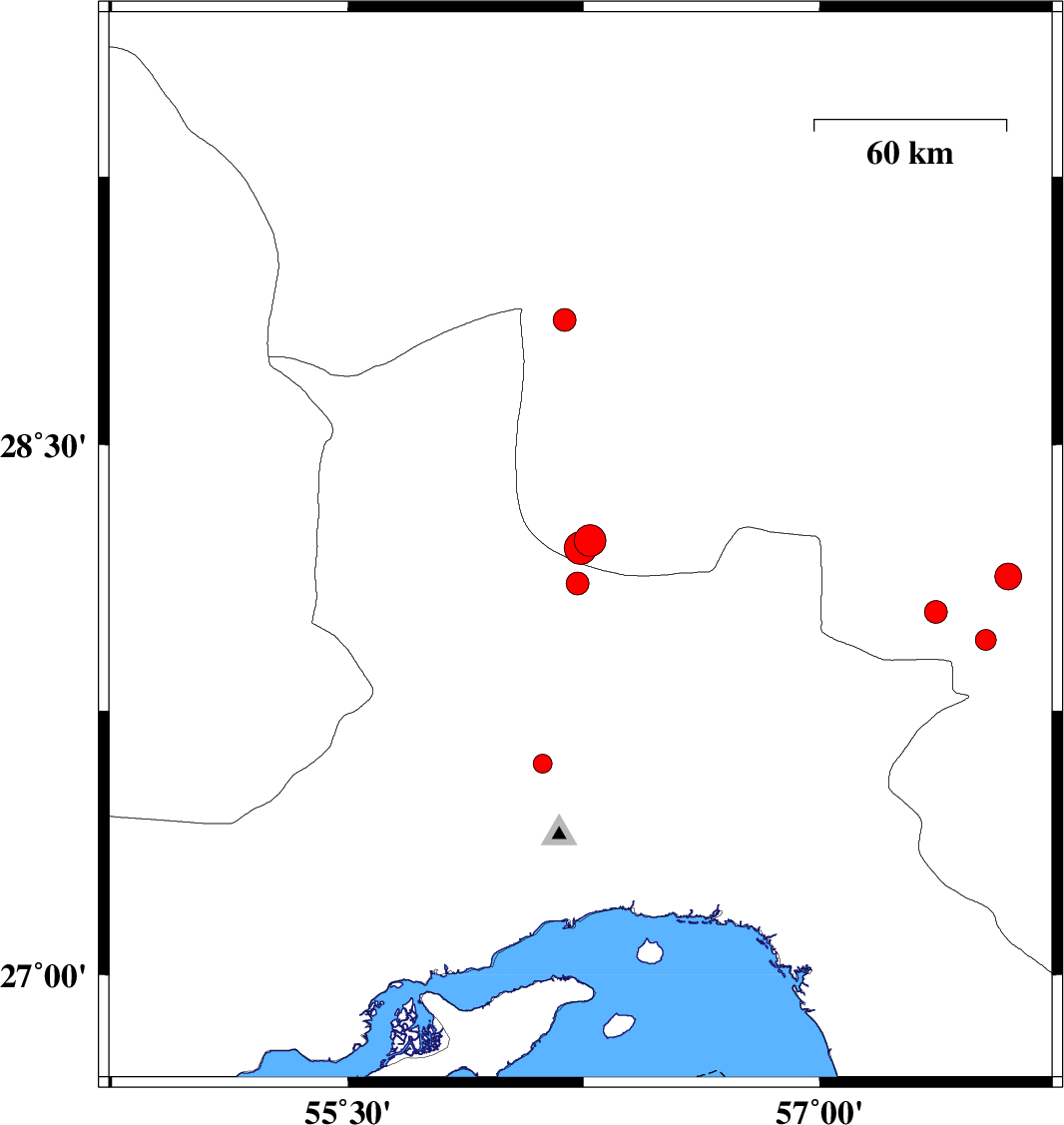 2007/04/21 15:34:32.6 19:04:32.6 27.9557.5315 ML:3 15 km West of Kahnuj, Kerman Province