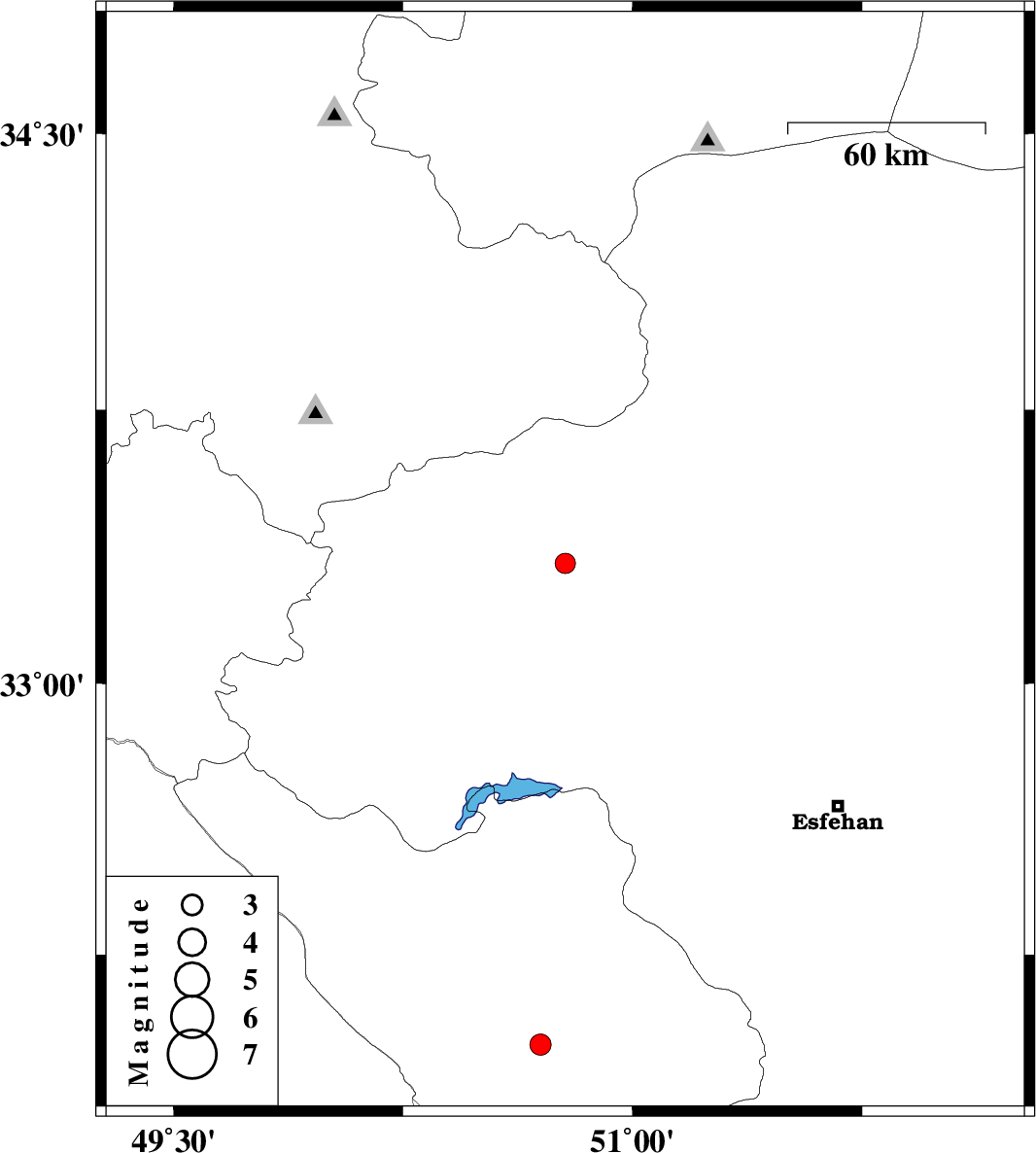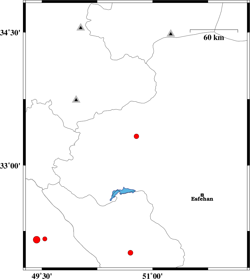 | 2007/04/25 | 16:56:32.5 | 20:26:32.5 | 33.33 | 50.78 | 15 | ML:2.9 | 44 km North-East of Khvansar, Esfahan Province | ||