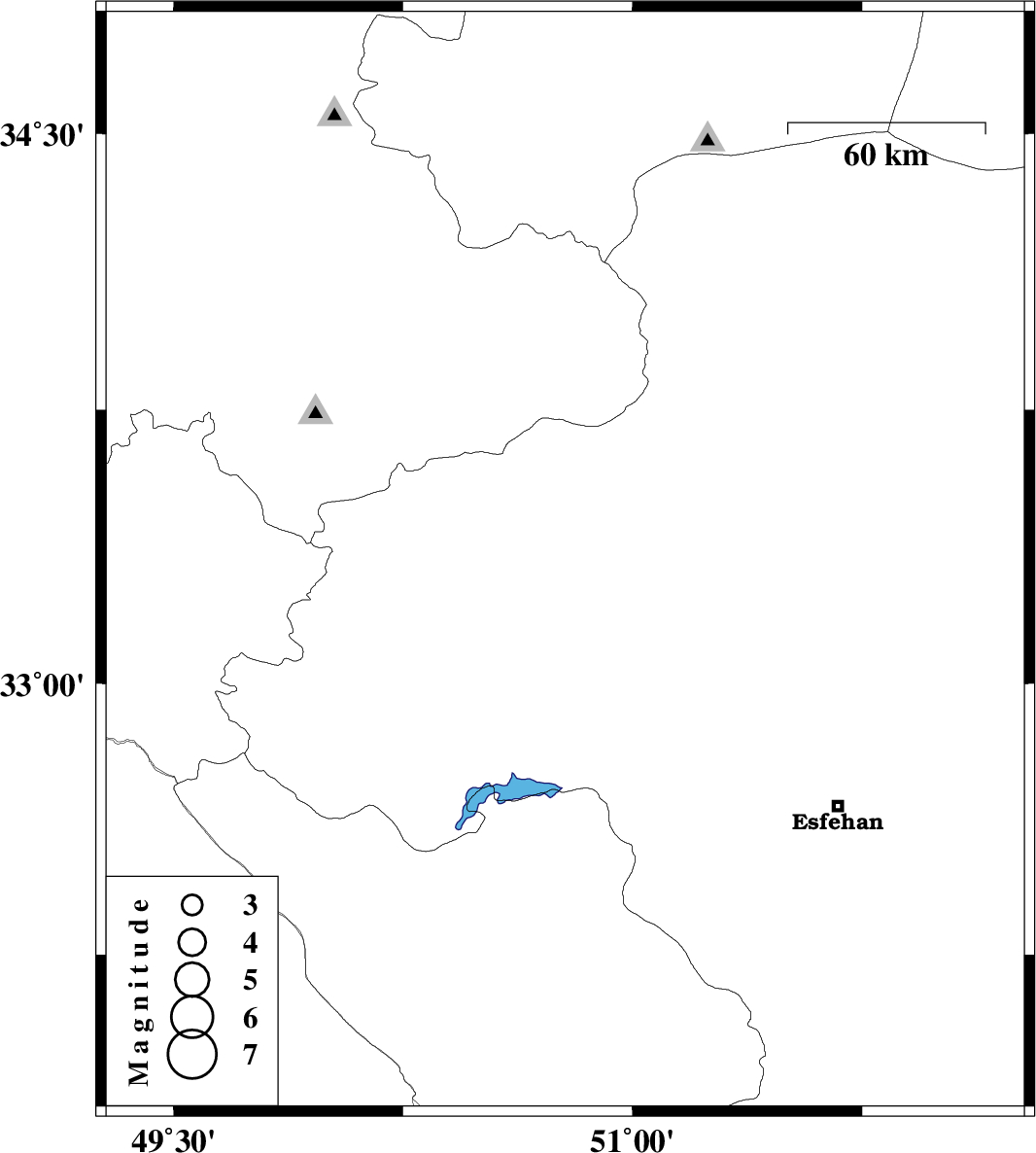 | 2007/04/25 | 16:56:32.5 | 20:26:32.5 | 33.33 | 50.78 | 15 | ML:2.9 | 44 km North-East of Khvansar, Esfahan Province |