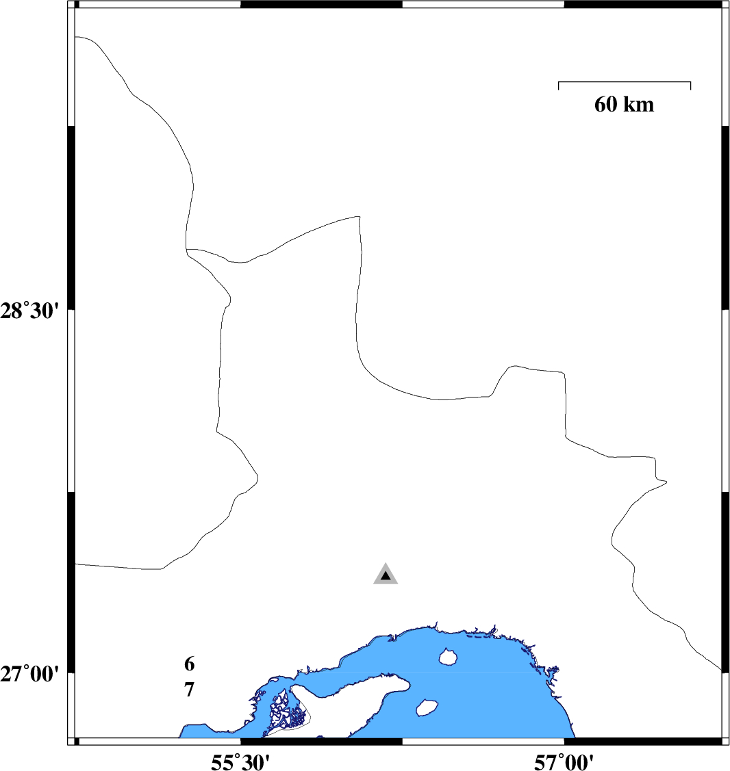 2007/04/21 15:34:32.6 19:04:32.6 27.9557.5315 ML:3 15 km West of Kahnuj, Kerman Province