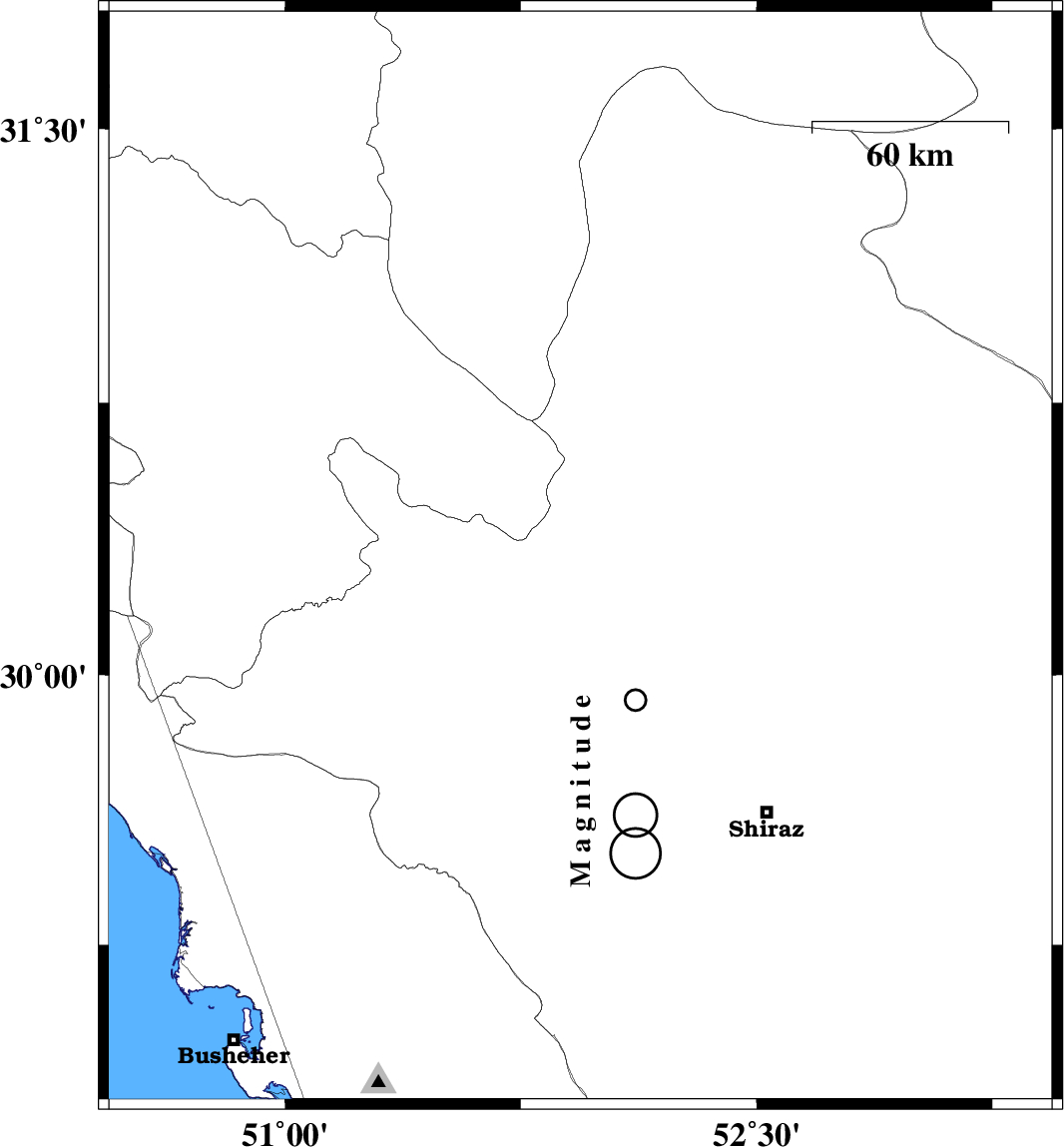 | 2007/05/28 | 14:12:06.4 | 17:42:06.4 | 30.32 | 51.94 | 15 | ML:3.8 | 8 km Ardakan, Fars Province |