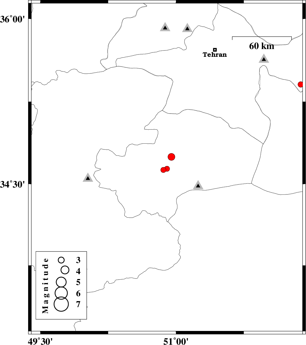 | 2007/06/25 | 23:05:47.9 | 02:35:47.9 | 35.3 | 52.33 | 6 | ML:2.8 | 8 km Garmsar, Semnan Province | ||