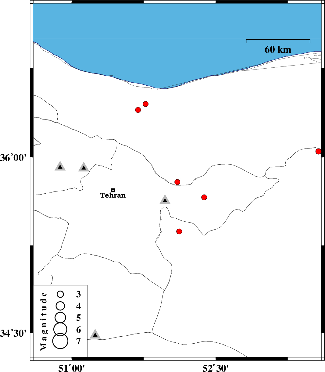 | 2007/05/06 | 15:55:36.6 | 19:25:36.6 | 35.66 | 52.38 | 8 | ML:2.6 | 28 km East of Damavand, Tehran Province | ||