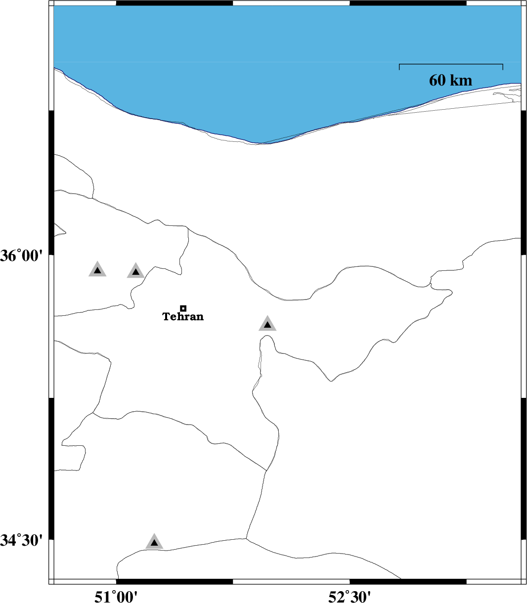 | 2007/05/23 | 01:39:37.4 | 05:09:37.4 | 36.45 | 51.77 | 14 | ML:2.6 | 27 km South-West of Nur, Mazandaran Province |