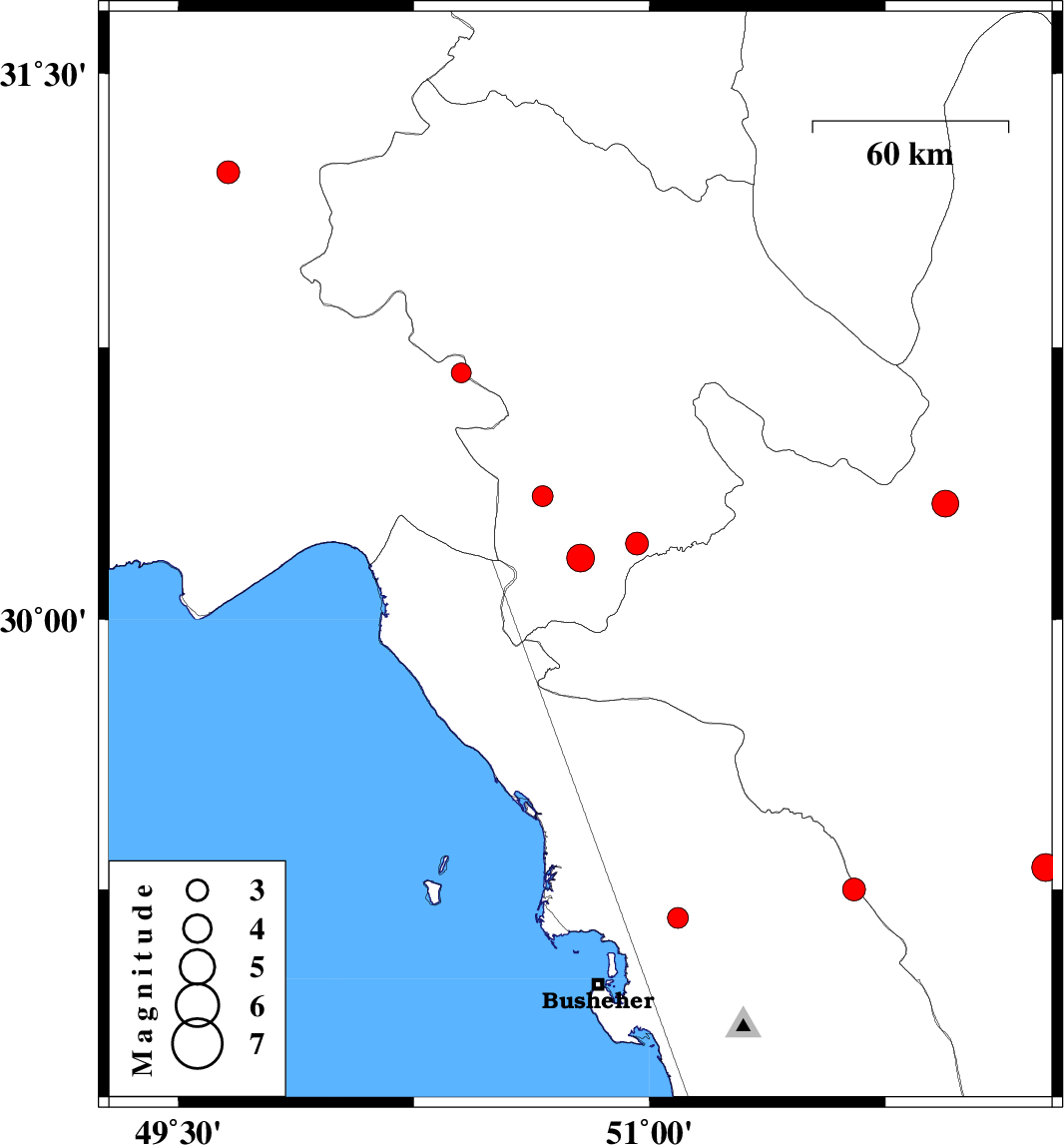 | 2007/05/29 | 06:18:57.2 | 09:48:57.2 | 29.31 | 52.26 | 46 | ML:4 | 43 km South-West of Shiraz, Fars Province | ||