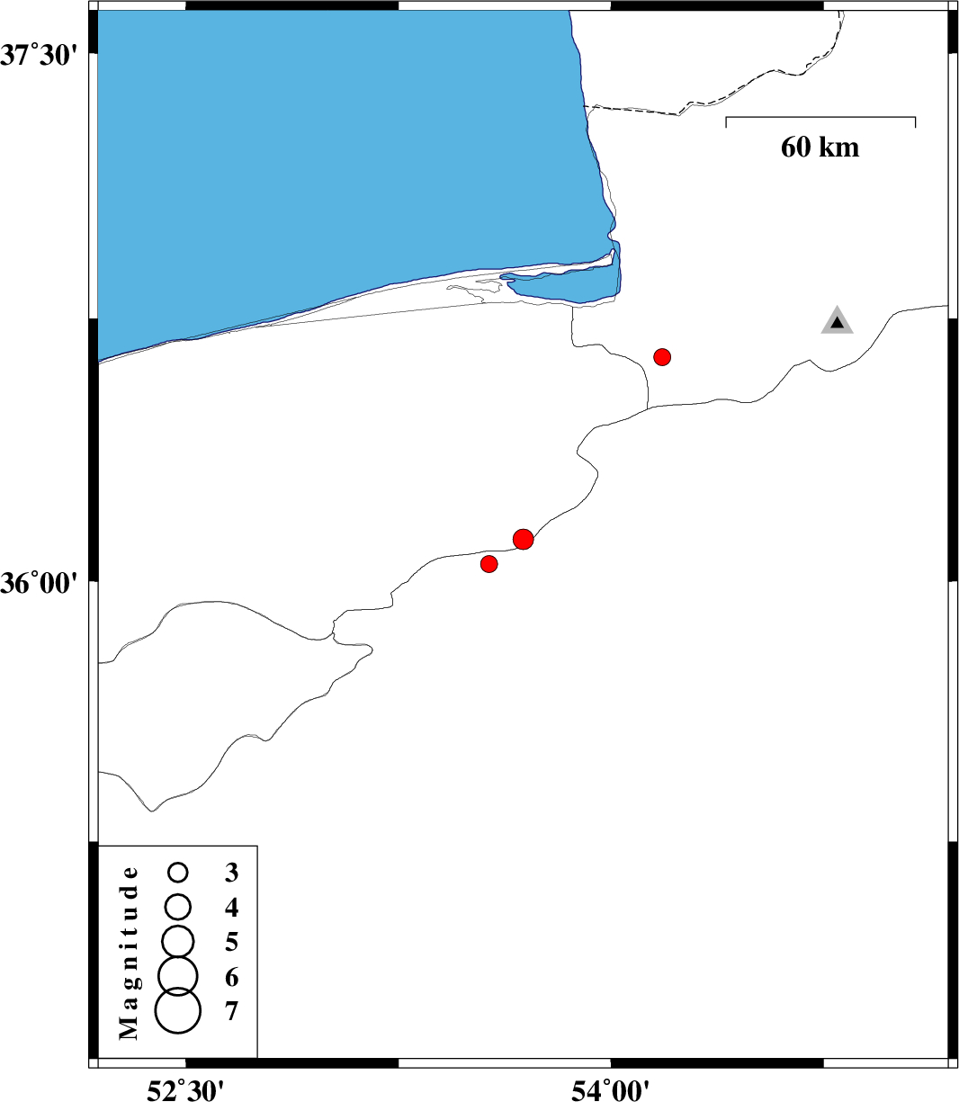 | 2007/05/26 | 07:59:59.1 | 11:29:59.1 | 36.05 | 53.57 | 14 | ML:2.7 | 46 km East of Pol-E-Sefid, Mazandaran Province |