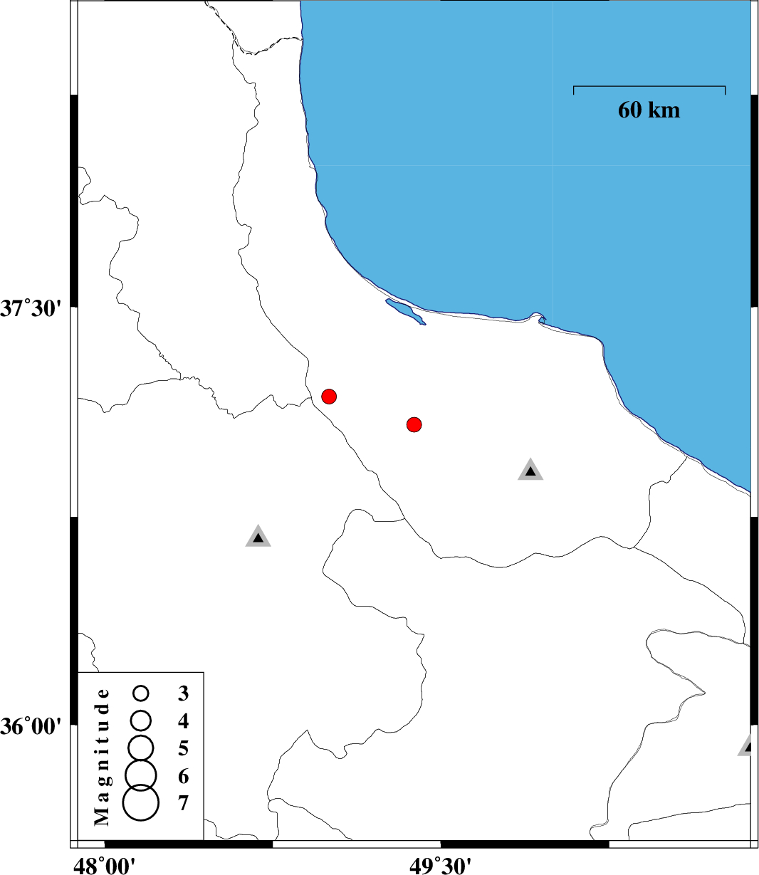 | 2007/06/06 | 23:10:56.8 | 02:40:56.8 | 37.18 | 49 | 16 | ML:3 | 27 km West of Fuman, Gilan Province |