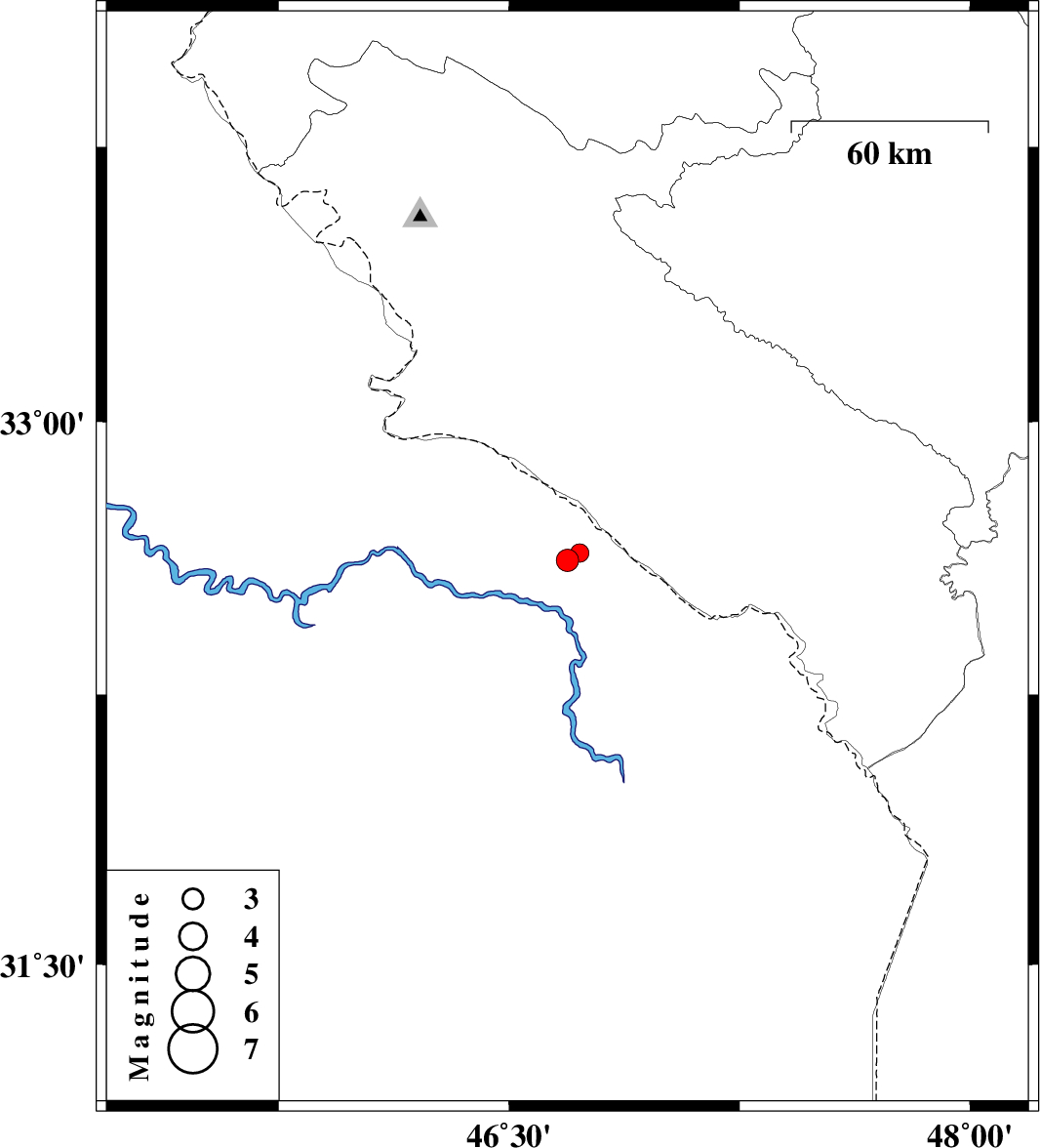2007/07/03 10:58:26.7 14:28:26.7 32.6246.6914 ML:3.2 53 km West of Dehloran, Ilam Province