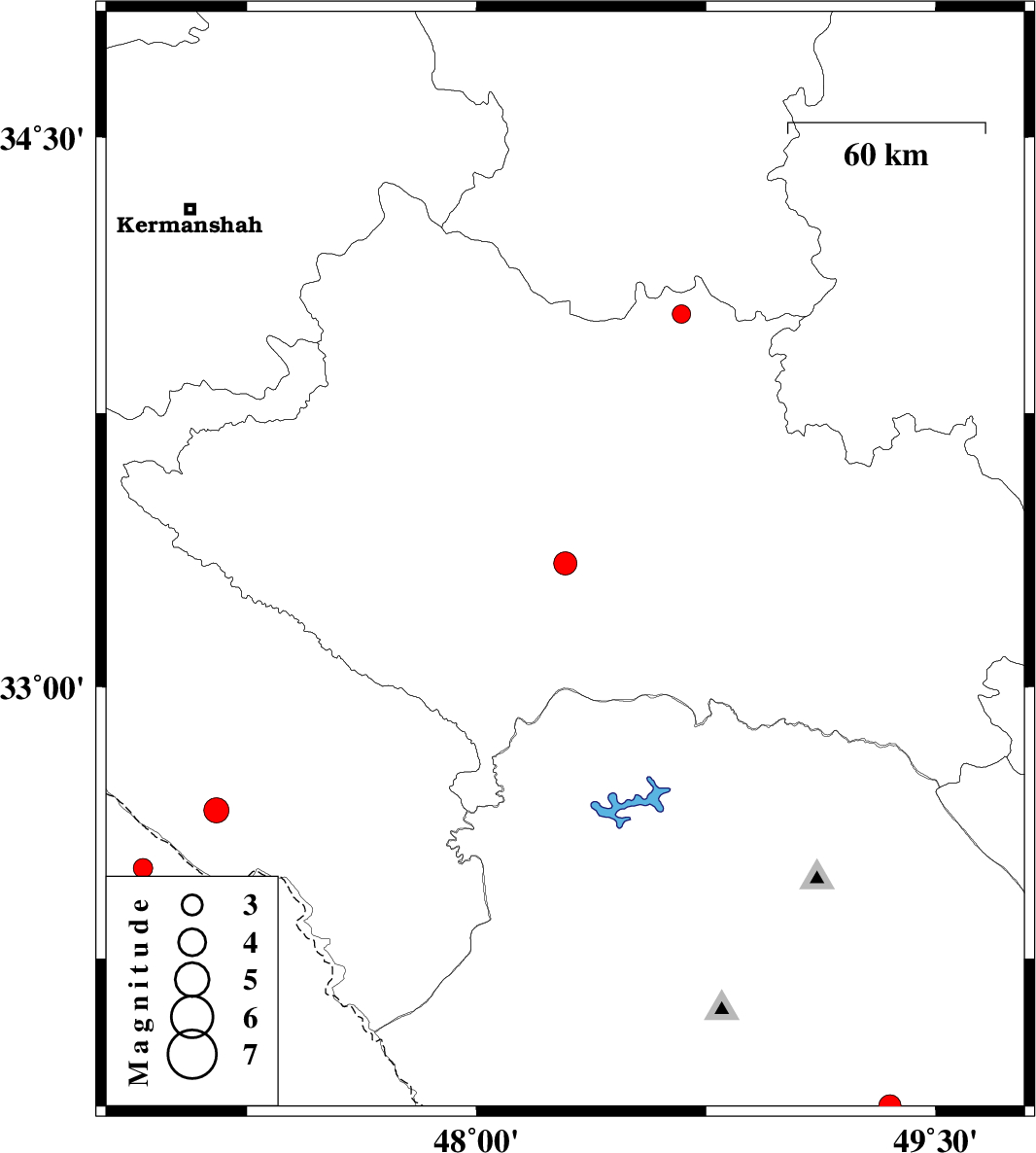 | 2007/07/07 | 07:59:44.0 | 11:29:44.0 | 32.5 | 46.91 | 14 | ML:2.8 | 39 km South-West of Dehloran, Ilam Province |