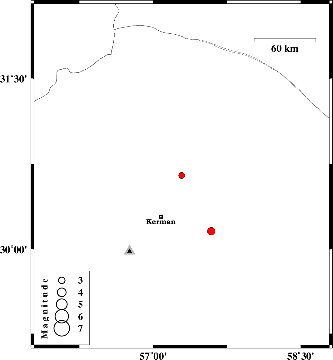 | 2007/09/05 | 23:41:29.7 | 03:11:29.7 | 30.65 | 57.29 | 14 | ML:2.8 | 45 km North-East of Kerman, Kerman Province | ||