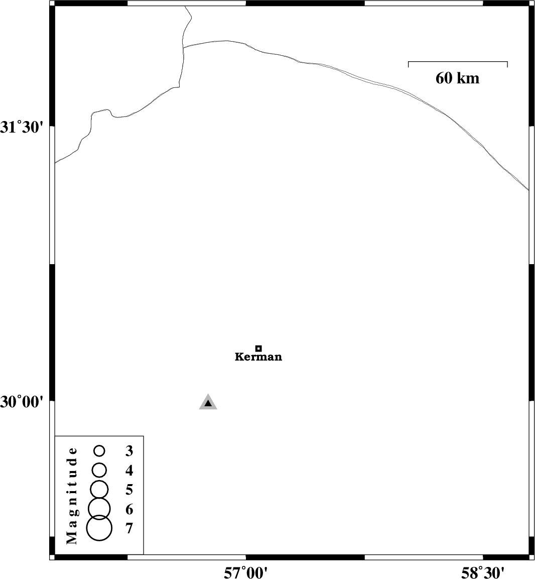 | 2007/09/05 | 23:41:29.7 | 03:11:29.7 | 30.65 | 57.29 | 14 | ML:2.8 | 45 km North-East of Kerman, Kerman Province |