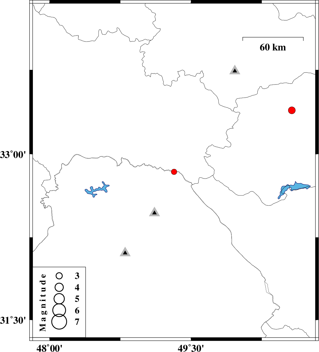 | 2007/09/06 | 18:22:09.0 | 21:52:09.0 | 32.84 | 49.32 | 14 | ML:2.7 | 53 km North-East of Lali, Khoozestan Province | ||