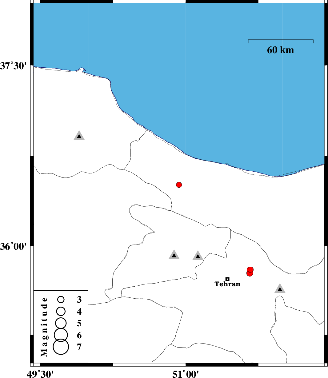 | 2007/07/31 | 03:07:59.8 | 06:37:59.8 | 35.77 | 51.66 | 16 | ML:2.9 | 19 km East of Tajrish, Tehran Province |
