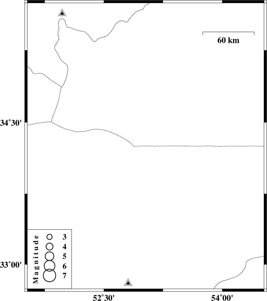 | 2007/07/07 | 21:21:13.0 | 00:51:13.0 | 34.24 | 53.03 | 14 | ML:2.6 | 113 km North-East of Ardestan, Esfahan Province |