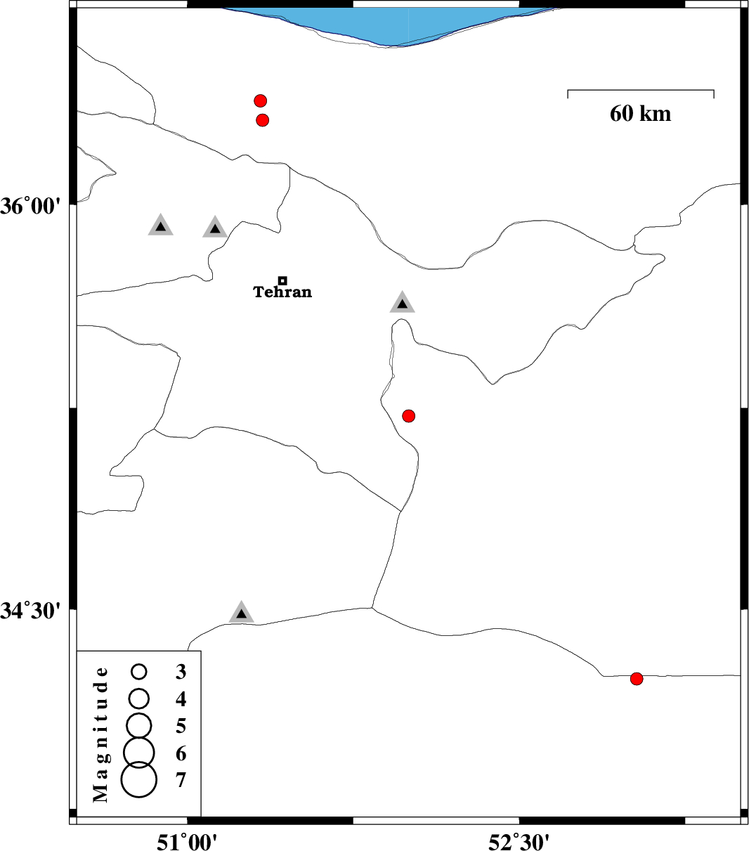 | 2007/07/04 | 09:25:54.9 | 12:55:54.9 | 36.38 | 51.33 | 15 | ML:2.5 | 31 km South of Chalus, Mazandaran Province |