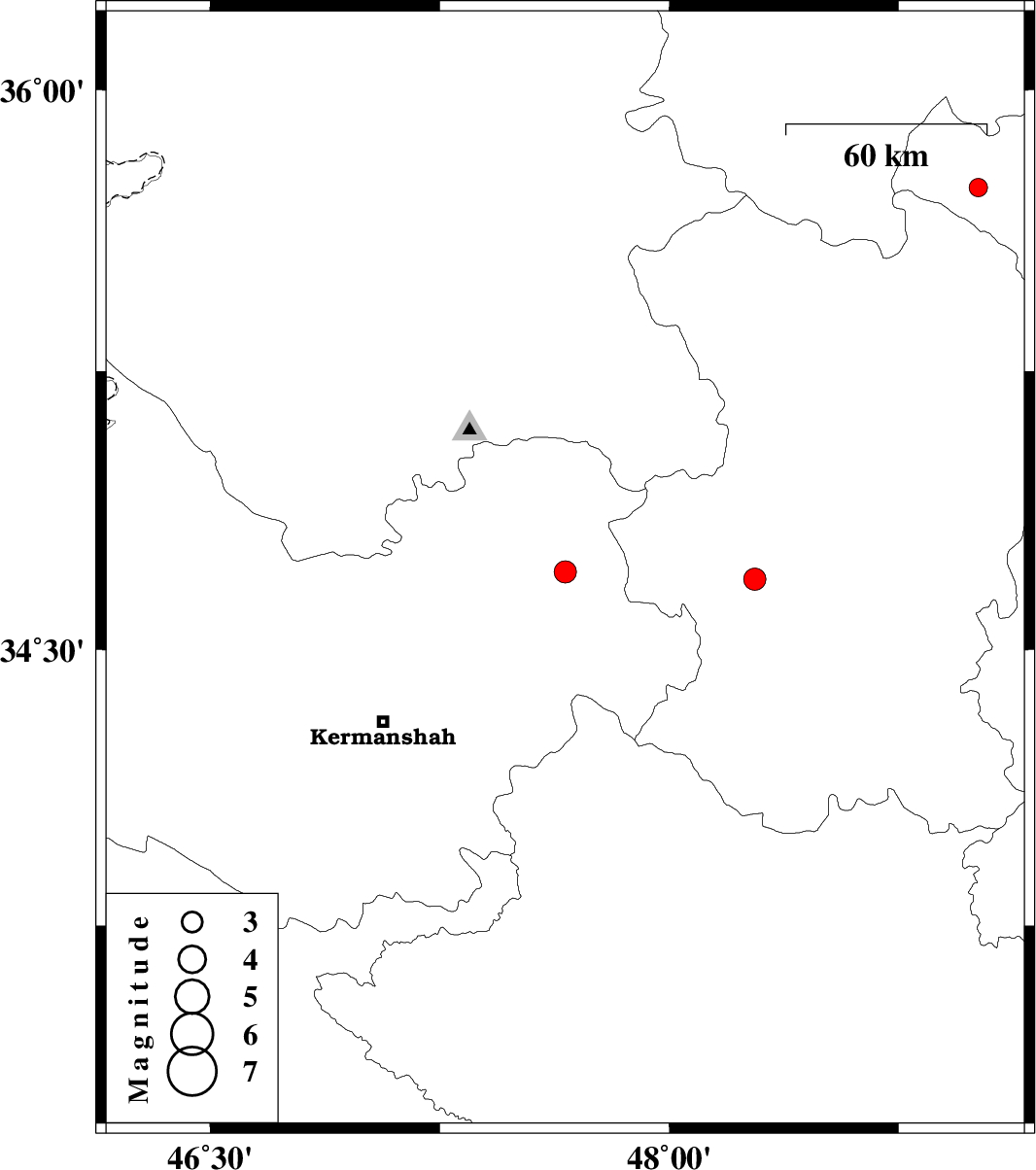 | 2007/09/09 | 18:58:43.4 | 22:28:43.4 | 34.69 | 48.28 | 16 | ML:3.2 | 17 km East of Asad Abad, Hamedan Province | ||