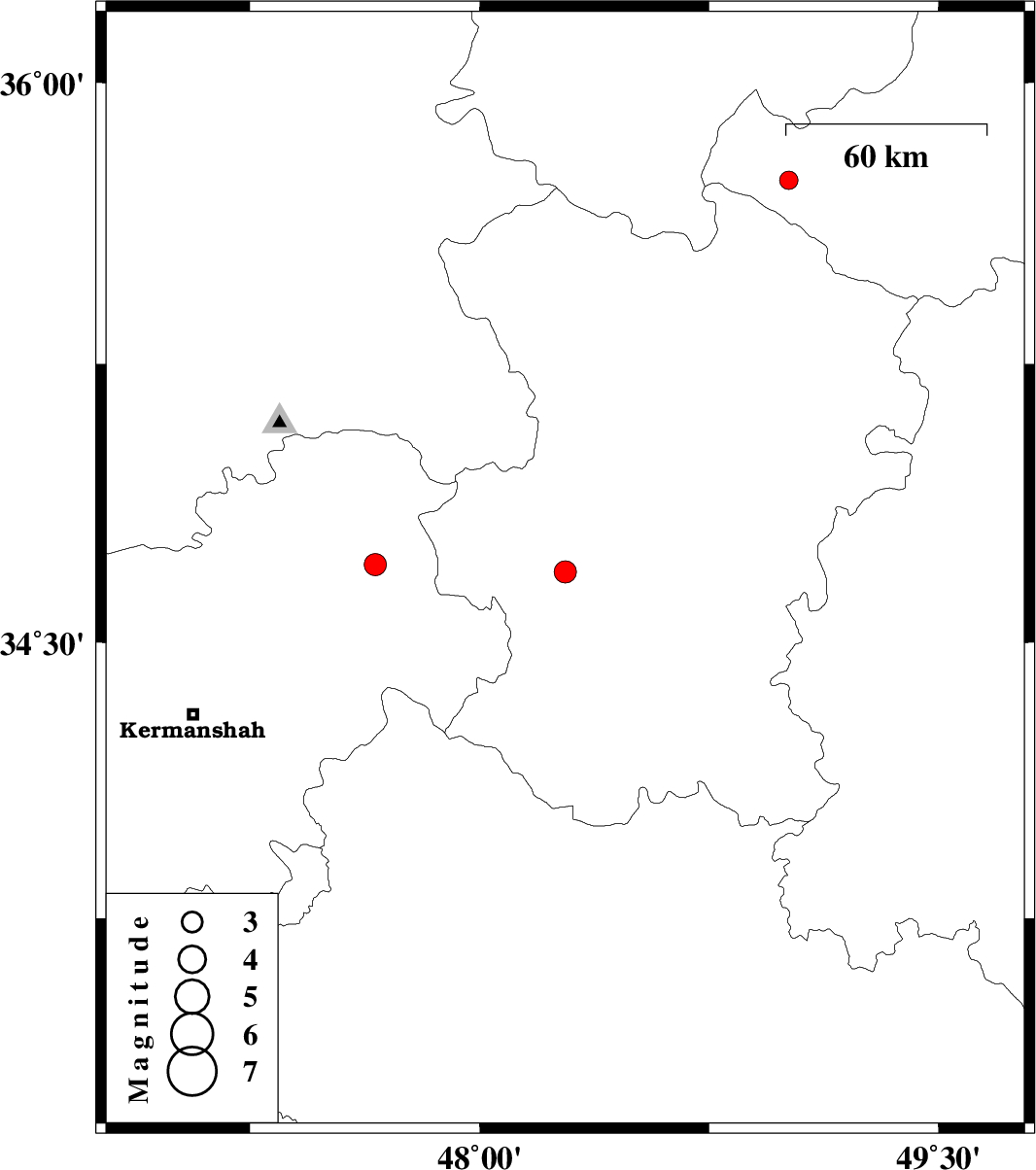 | 2007/09/09 | 06:38:56.9 | 10:08:56.9 | 34.71 | 47.66 | 14 | ML:3.3 | 10 km Sonqor, Kermanshah Province | ||