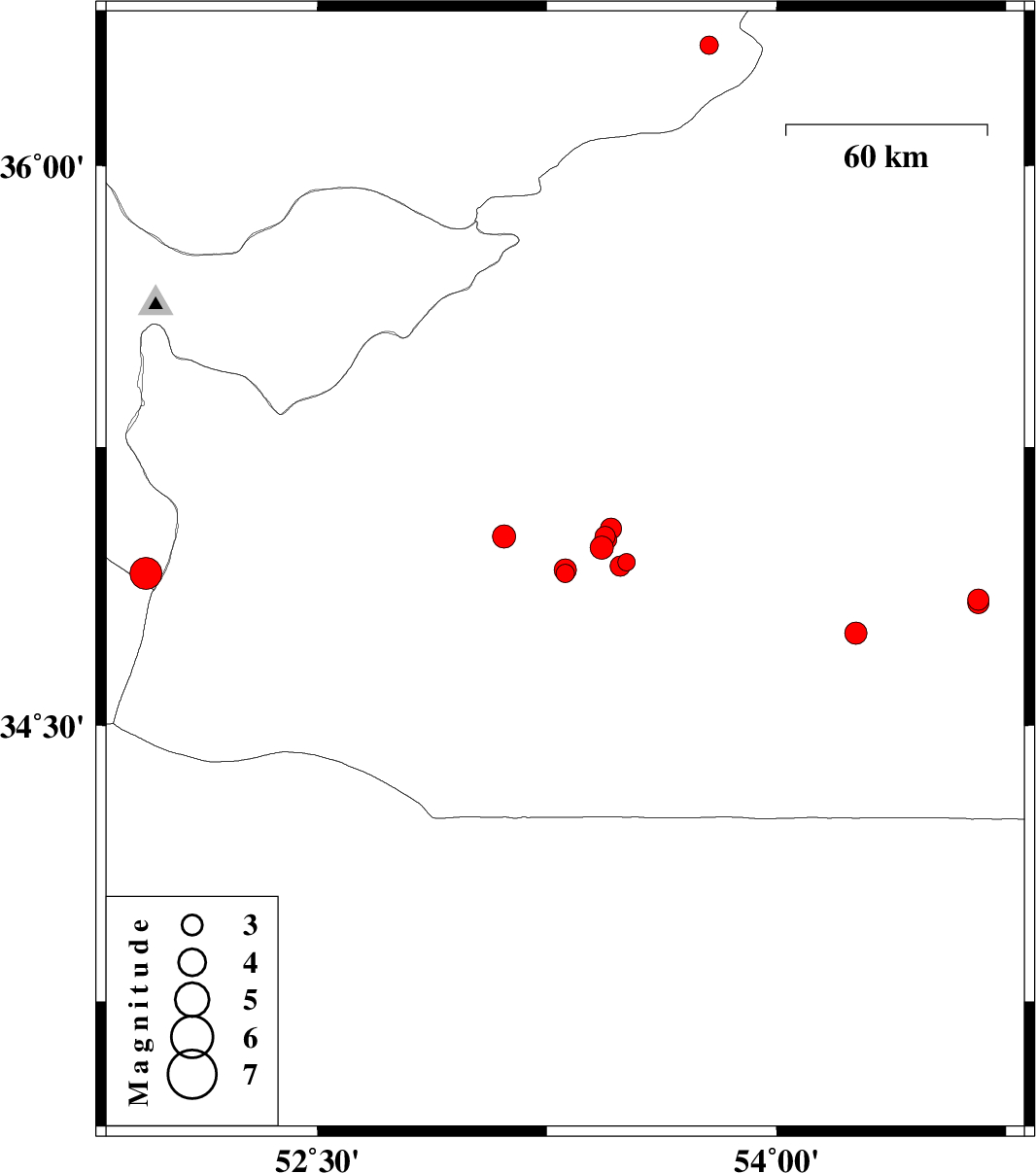 2007/09/07 04:32:31.5 08:02:31.5 3553.4514 ML:2.5 62 km South of Semnan, Semnan Province