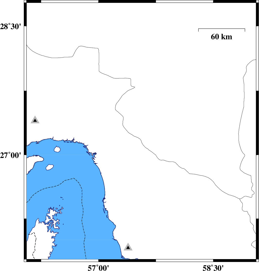 | 2007/07/09 | 01:11:11.3 | 04:41:11.3 | 27.85 | 56.92 | 38 | ML:3.6 | 56 km North-West of Dehbarez, Hormozgan Province |
