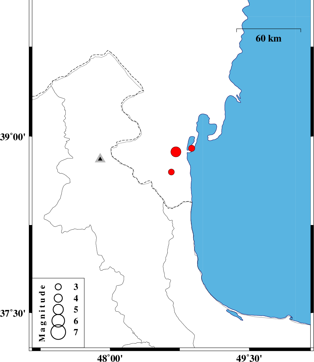 | 2007/07/11 | 03:47:41.2 | 07:17:41.2 | 38.9 | 48.88 | 22 | ML:3.1 | 52 km North of Astara, Gilan Province |