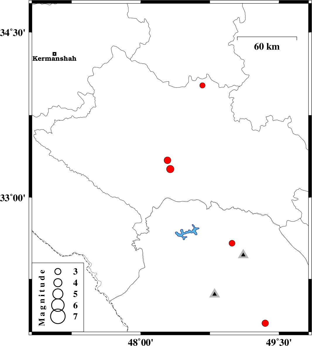 | 2007/08/14 | 17:39:55.2 | 21:09:55.2 | 33.26 | 48.32 | 39 | ML:3.6 | 25 km South of Khorramabad, Lorestan Province | ||