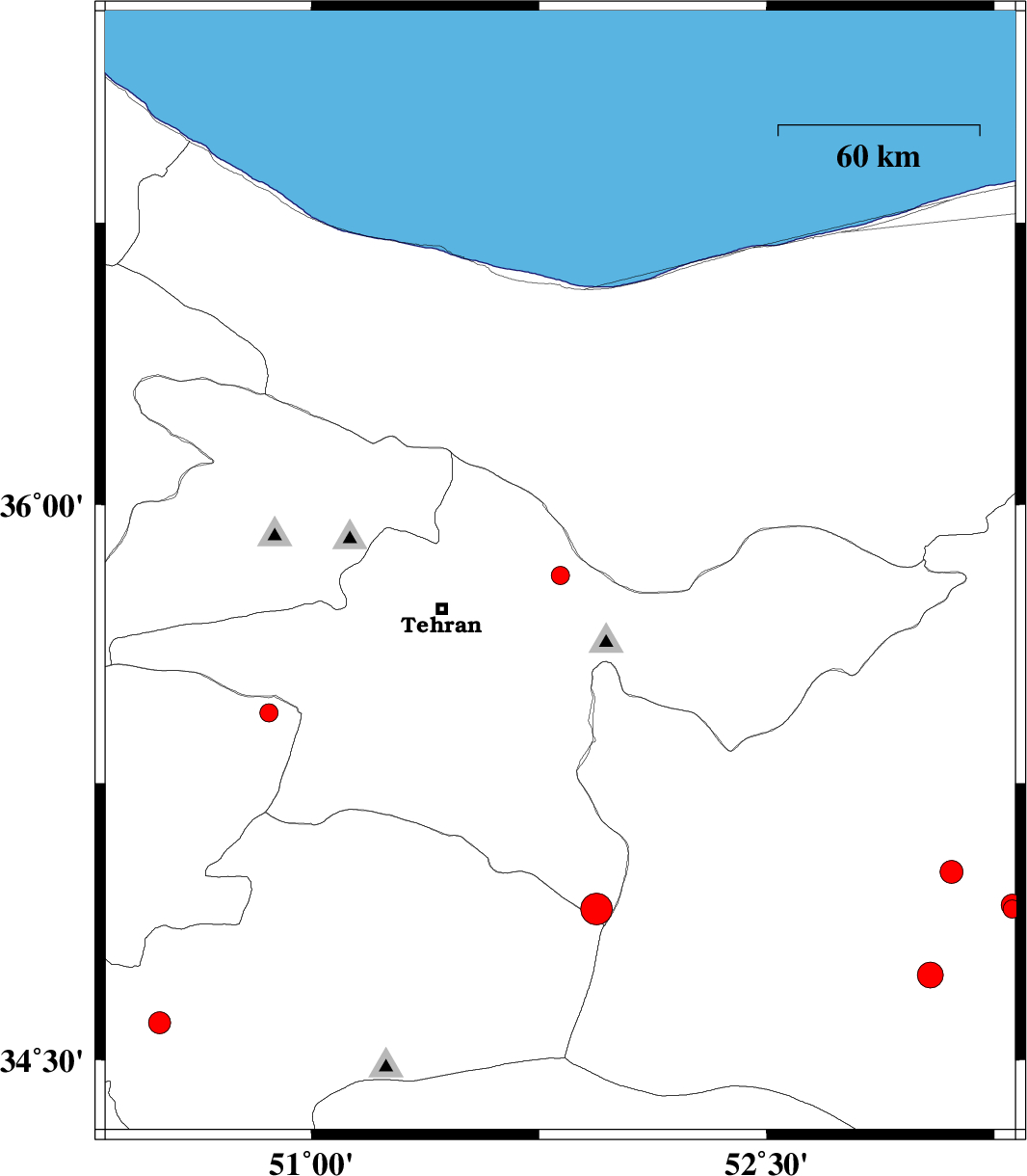 | 2007/09/14 | 07:40:35.5 | 11:10:35.5 | 35.44 | 50.86 | 43 | ML:2.7 | 20 km West of Robatkarim, Tehran Province | ||