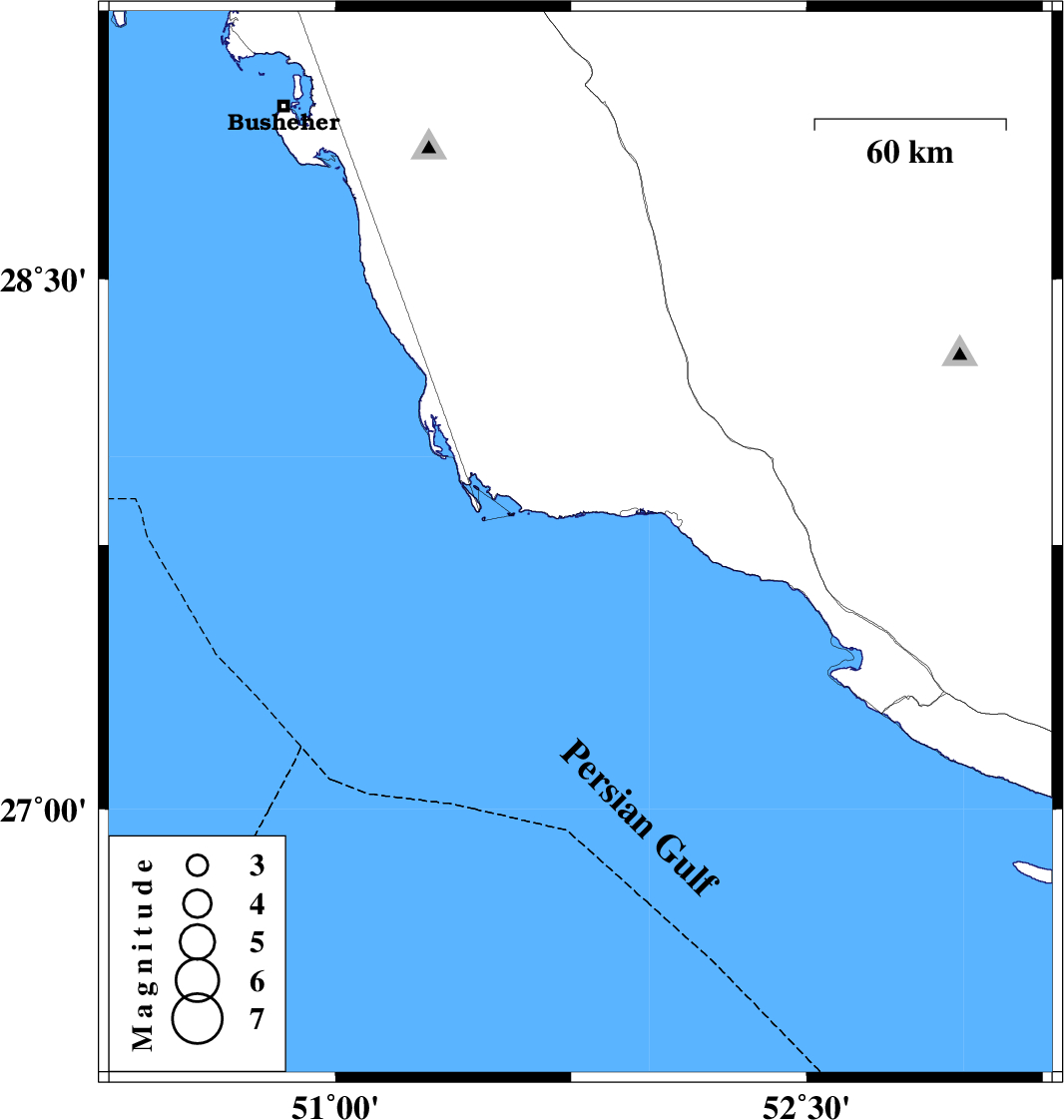 | 2007/08/15 | 12:24:52.9 | 15:54:52.9 | 27.75 | 51.78 | 18 | ML:3.8 | Persian Gulf, 29 km West of Bandar-e kangan |