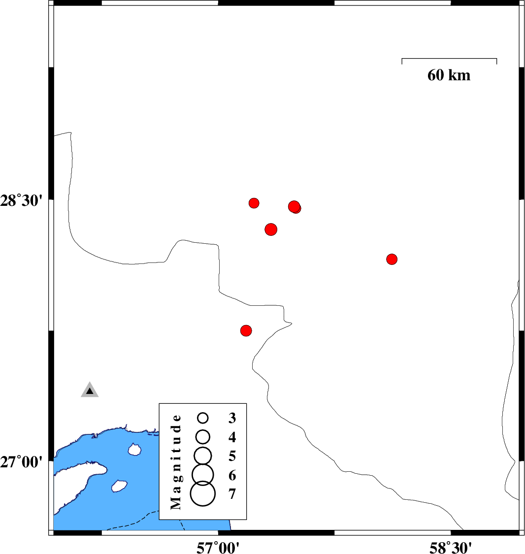| 2007/09/10 | 10:36:02.5 | 14:06:02.5 | 28.39 | 56.82 | 15 | ML:3 | 90 km East of Hajiabad, Hormozgan Province | ||