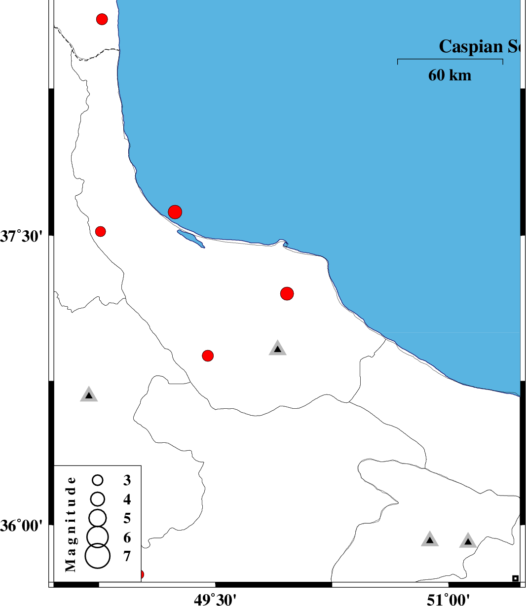 | 2007/08/20 | 16:08:57.3 | 19:38:57.3 | 37.62 | 49.24 | 14 | ML:4 | Caspian Sea, 11 km Rezvanshahr |