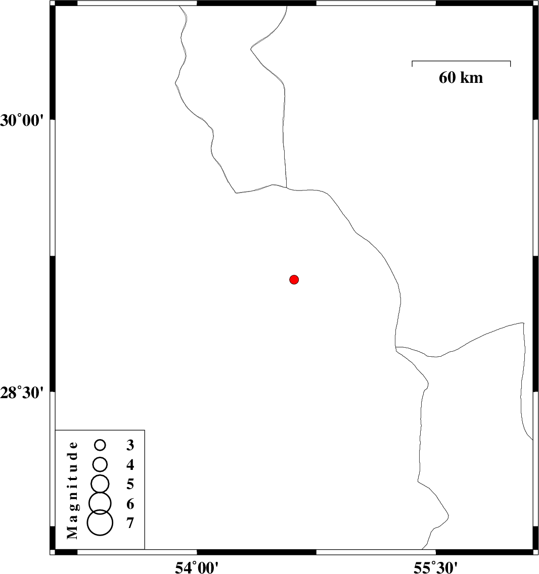 | 2007/08/18 | 06:18:20.4 | 09:48:20.4 | 28.05 | 53.36 | 11 | ML:3.3 | 53 km South-West of Jahrom, Fars Province |