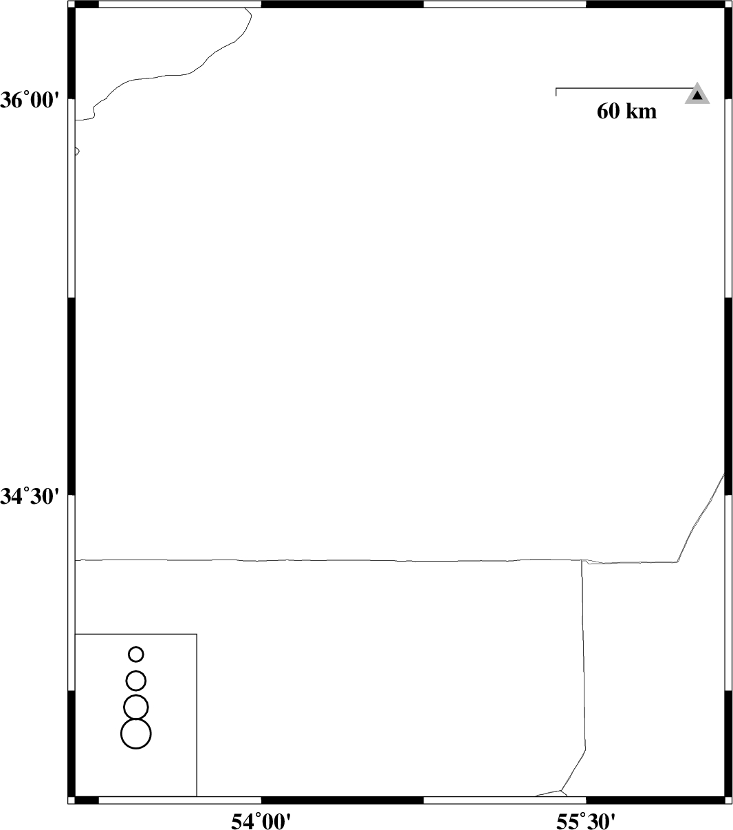| 2007/07/19 | 18:19:51.2 | 21:49:51.2 | 34.84 | 54.64 | 14 | ML:3.7 | 138 km South-East of Semnan, Semnan Province |