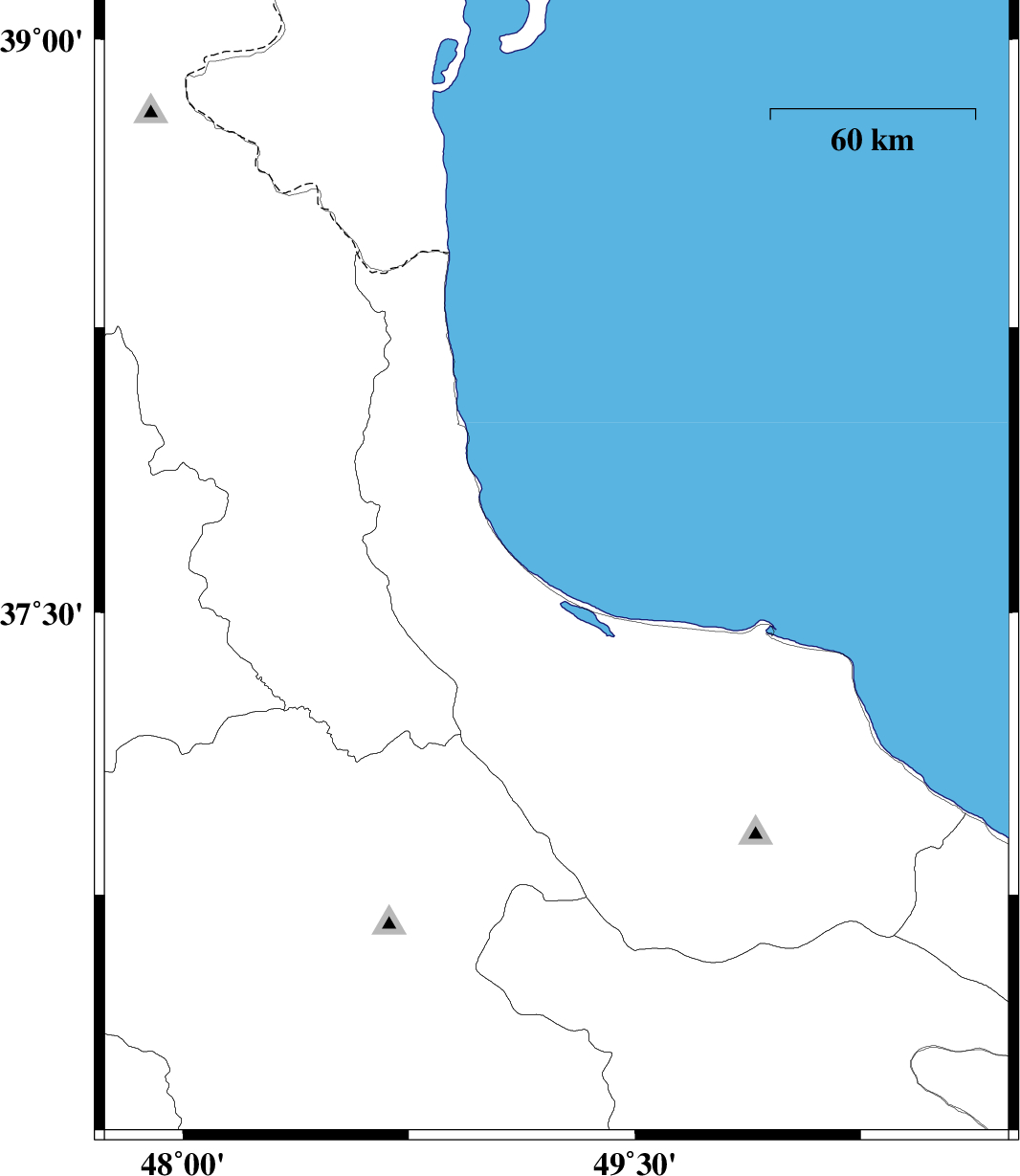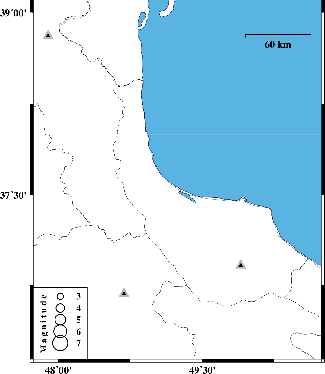 | 2007/08/20 | 16:08:57.3 | 19:38:57.3 | 37.62 | 49.24 | 14 | ML:4 | Caspian Sea, 11 km Rezvanshahr |