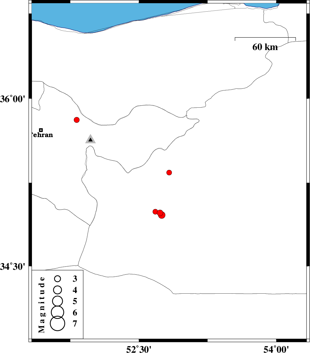 | 2007/09/15 | 07:01:16.8 | 10:31:16.8 | 35.81 | 51.82 | 18 | ML:2.7 | 25 km West of Damavand, Tehran Province |
