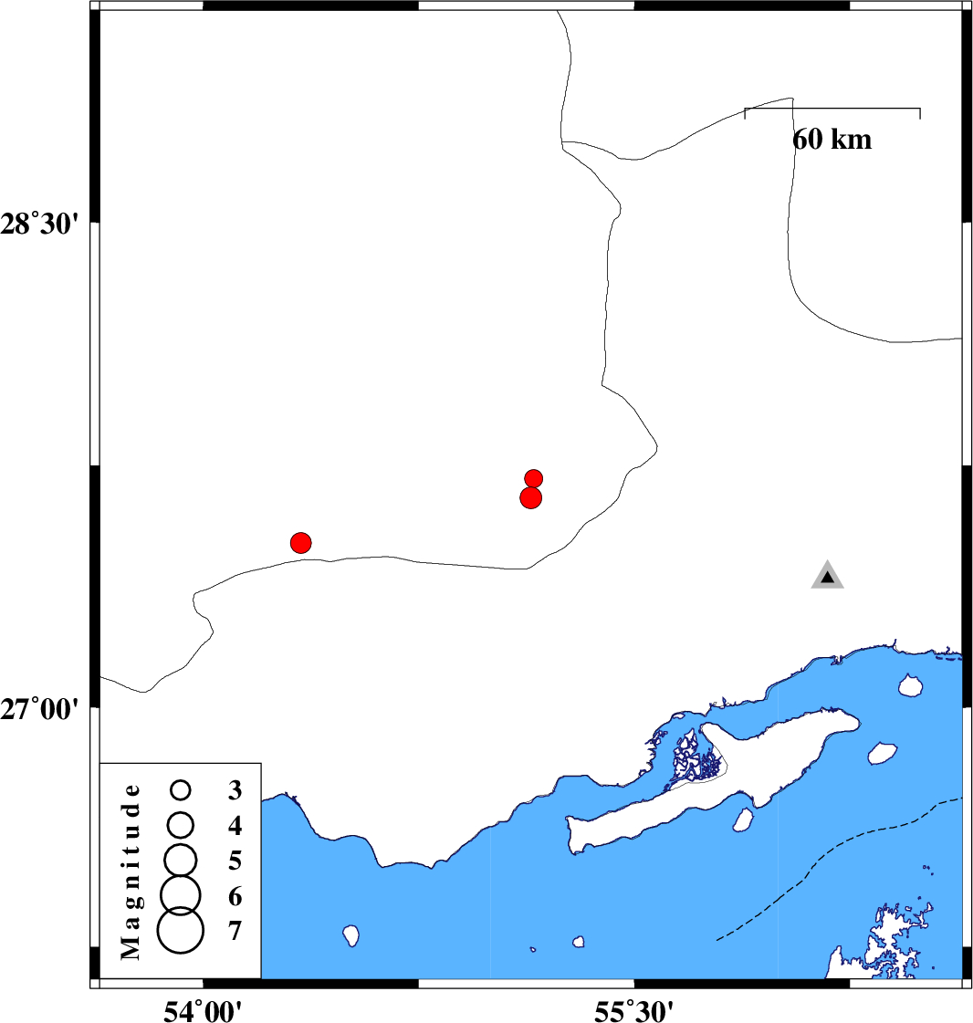 | 2007/07/21 | 05:20:15.9 | 08:50:15.9 | 27.71 | 55.15 | 37 | ML:2.8 | 80 km East of Lar, Fars Province | ||