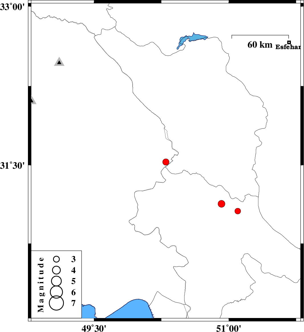 | 2007/07/20 | 16:07:57.7 | 19:37:57.7 | 31.13 | 50.92 | 14 | ML:3.5 | 41 km South-East of Lordegan, Chaharmahal Bakhtiari Province |