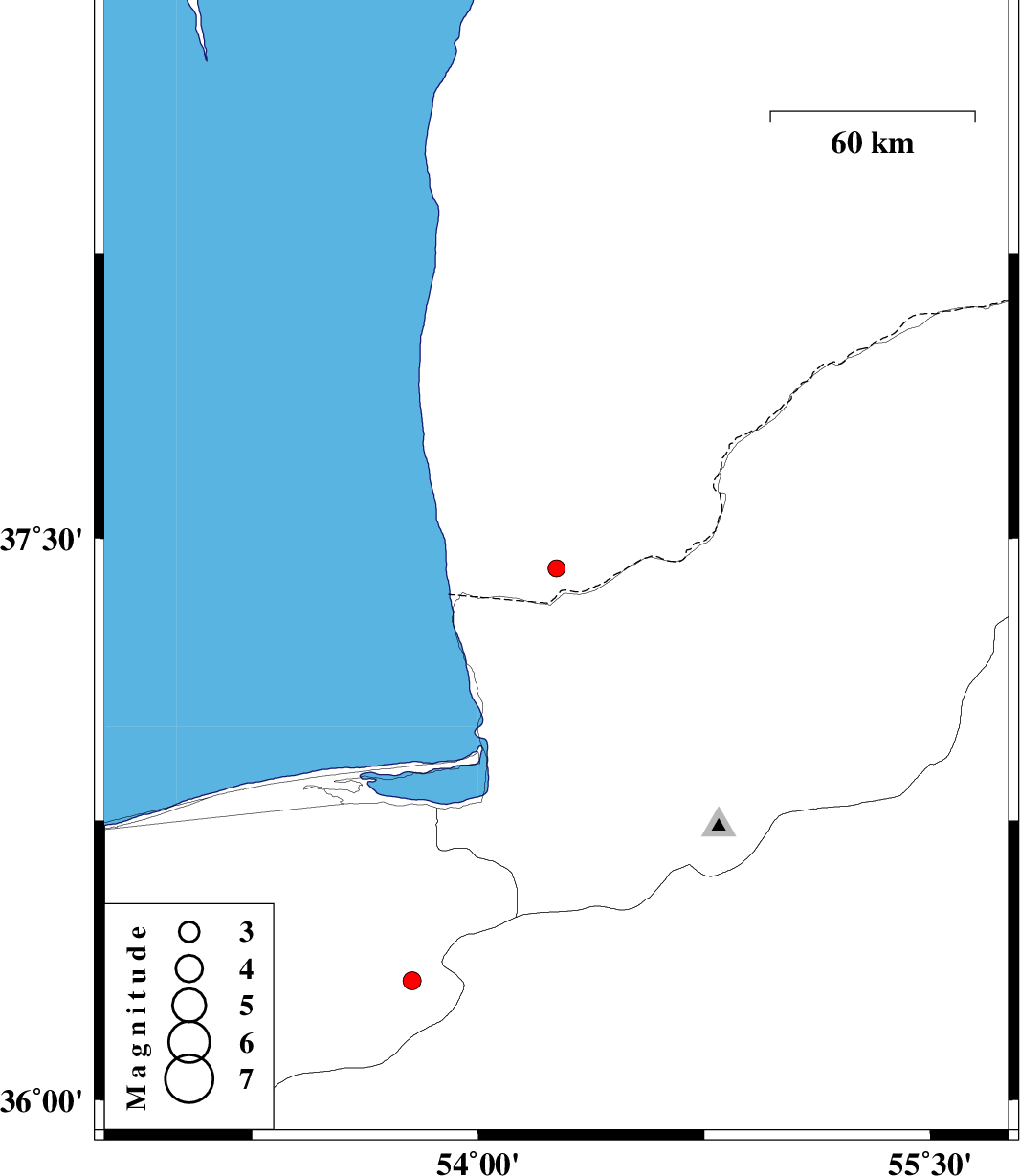 2007/08/27 02:50:31.4 06:20:31.4 36.3253.7814 ML:2.7 46 km South-East of Behshahr, Mazandaran Province