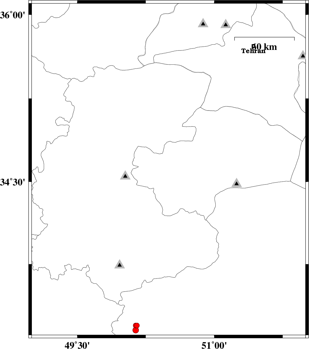 | 2007/08/29 | 11:25:06.8 | 14:55:06.8 | 34.6 | 50.5 | 14 | ML:3.2 | 33 km West of Qom, Qom Province | ||