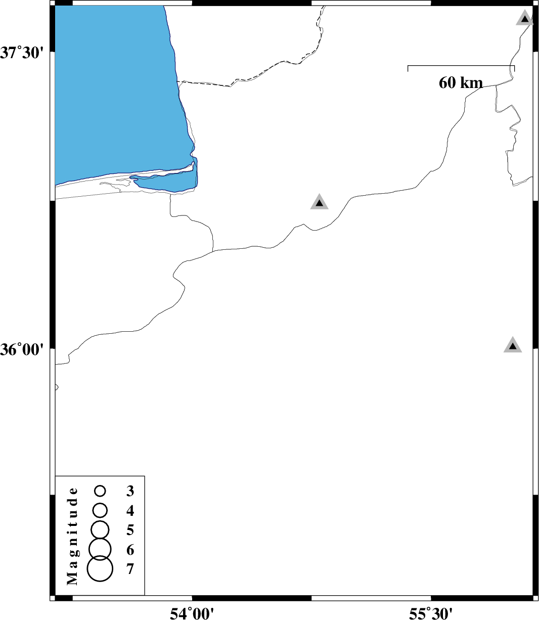 | 2007/09/30 | 13:39:56.1 | 17:09:56.1 | 36.23 | 54.64 | 14 | ML:3.3 | 27 km East of Damghan, Semnan Province |