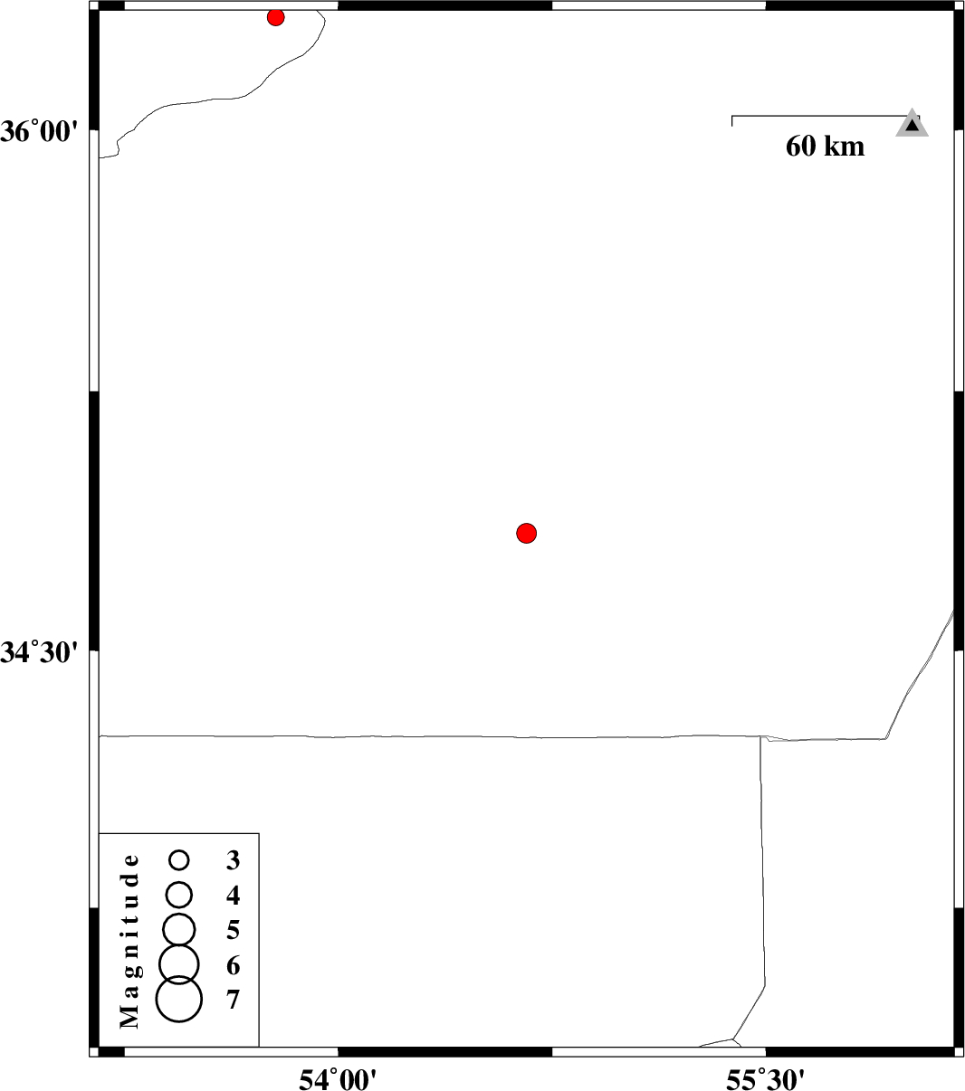 | 2007/08/27 | 02:50:31.4 | 06:20:31.4 | 36.32 | 53.78 | 14 | ML:2.7 | 46 km South-East of Behshahr, Mazandaran Province |