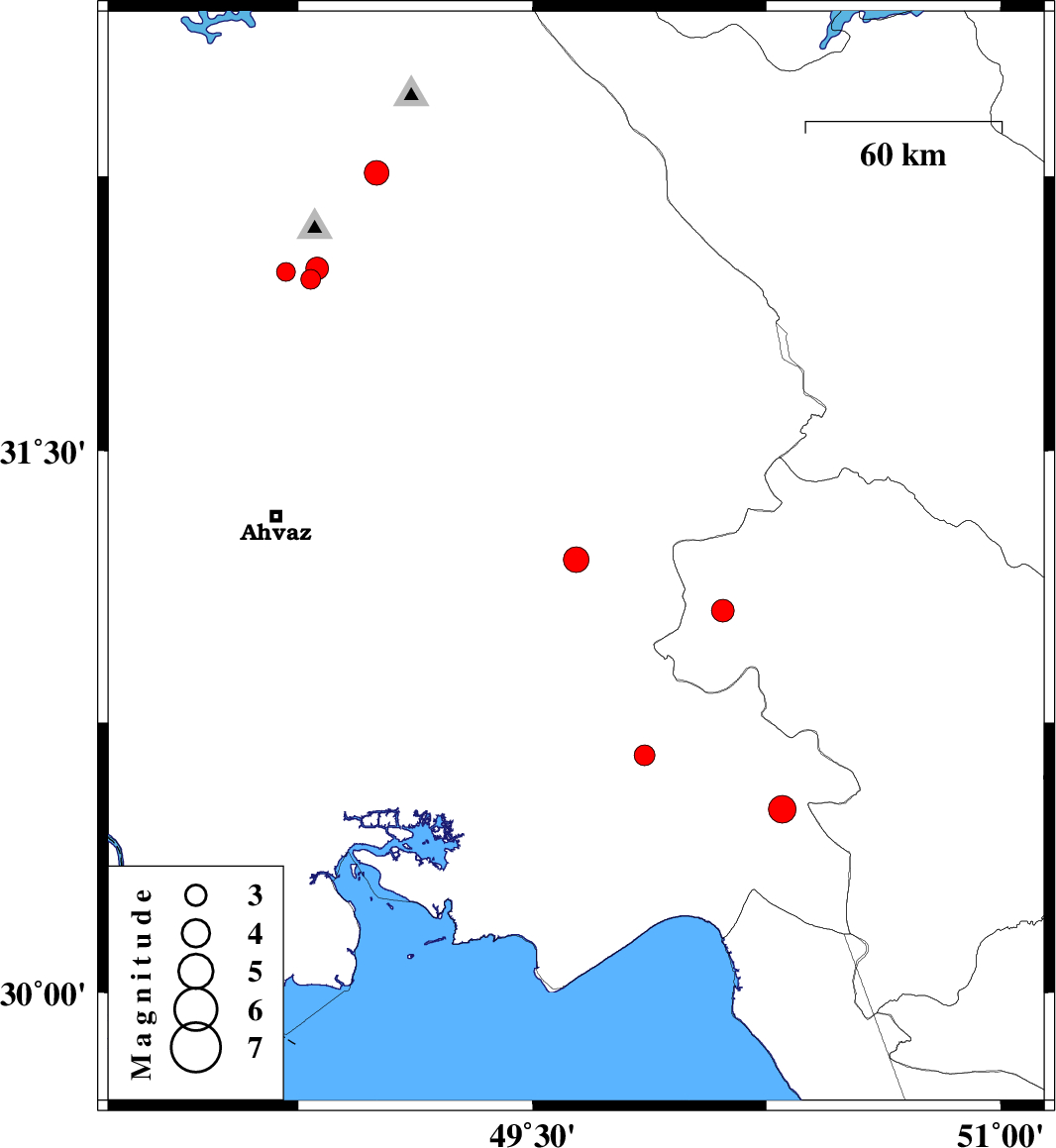 | 2007/09/10 | 21:18:57.1 | 00:48:57.1 | 31.99 | 48.71 | 4 | ML:2.7 | 14 km West of Shushtar, Khoozestan Province | ||