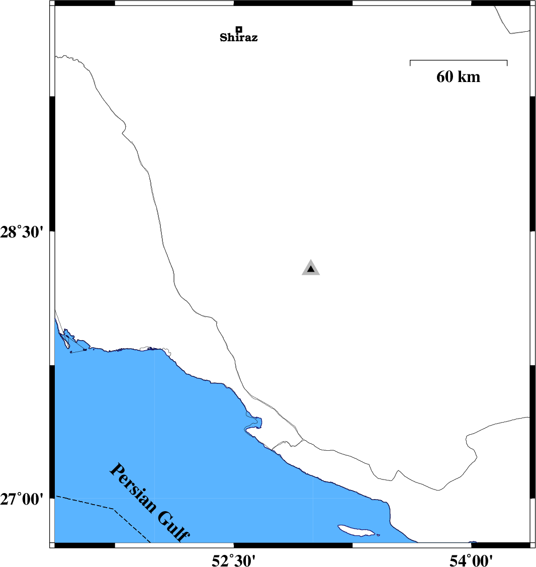 | 2007/09/18 | 04:38:54.2 | 08:08:54.2 | 26.89 | 54.36 | 35 | ML:2.9 | 34 km South of Bastak, Hormozgan Province |