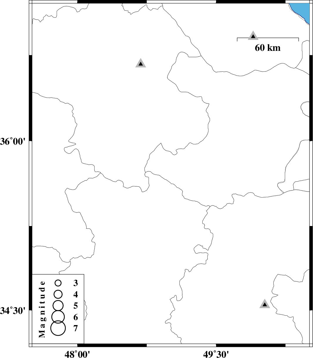 2007/10/10 | 10:19:33.4 | 13:49:33.4 | 35.7 | 49.01 | 32 | ML:3.2 | 34 km North of Razan, Hamedan Province |