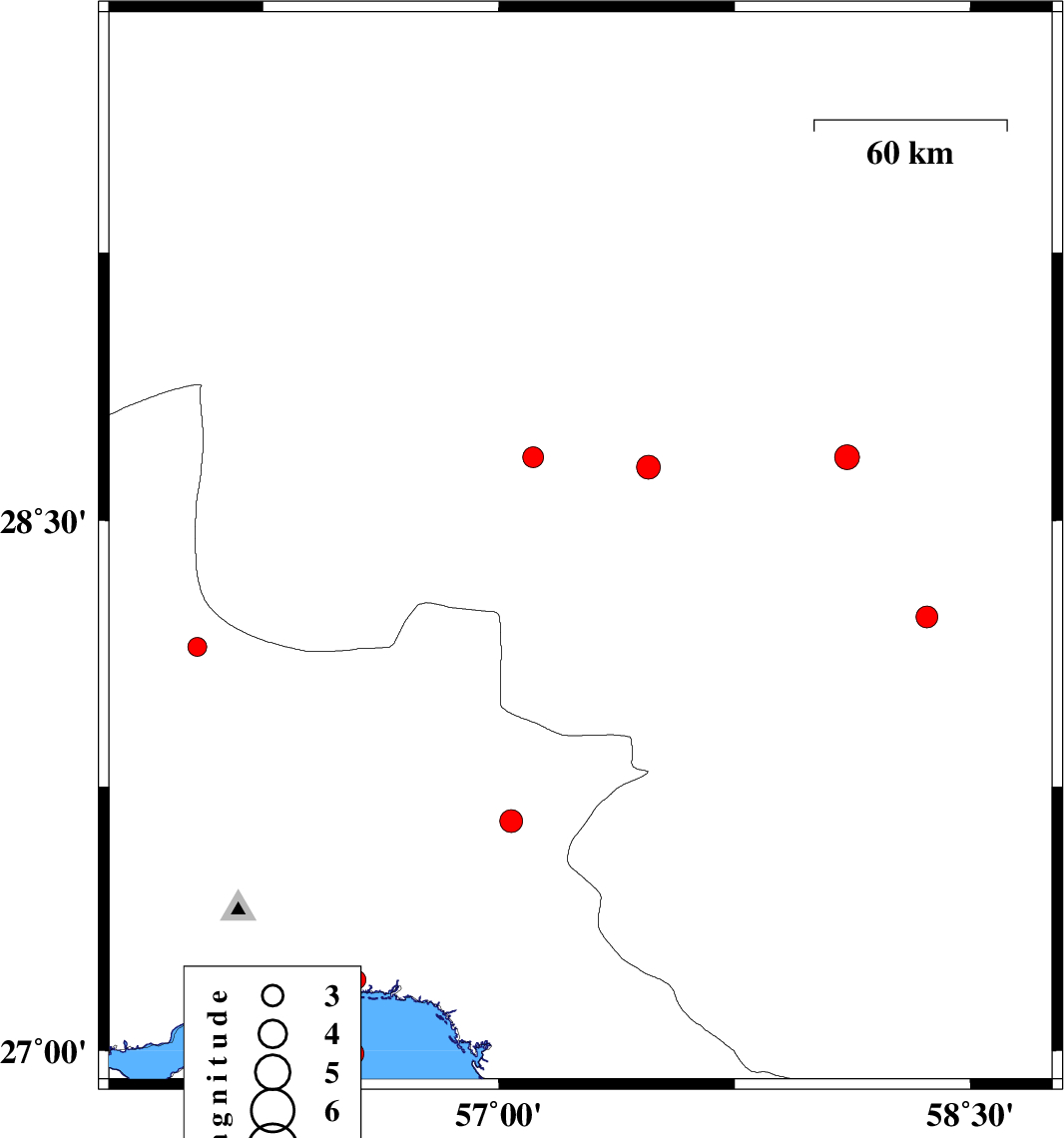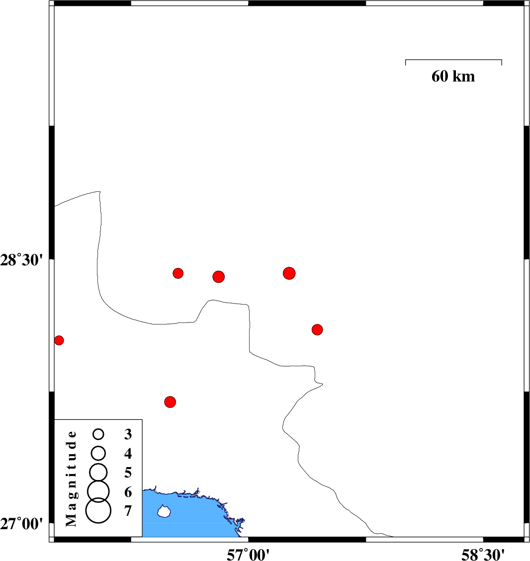 | 2007/09/23 | 21:06:07.6 | 00:36:07.6 | 27.24 | 56.1 | 41 | ML:3.2 | 18 km West of Bandar-e abbas, Hormozgan Province | ||