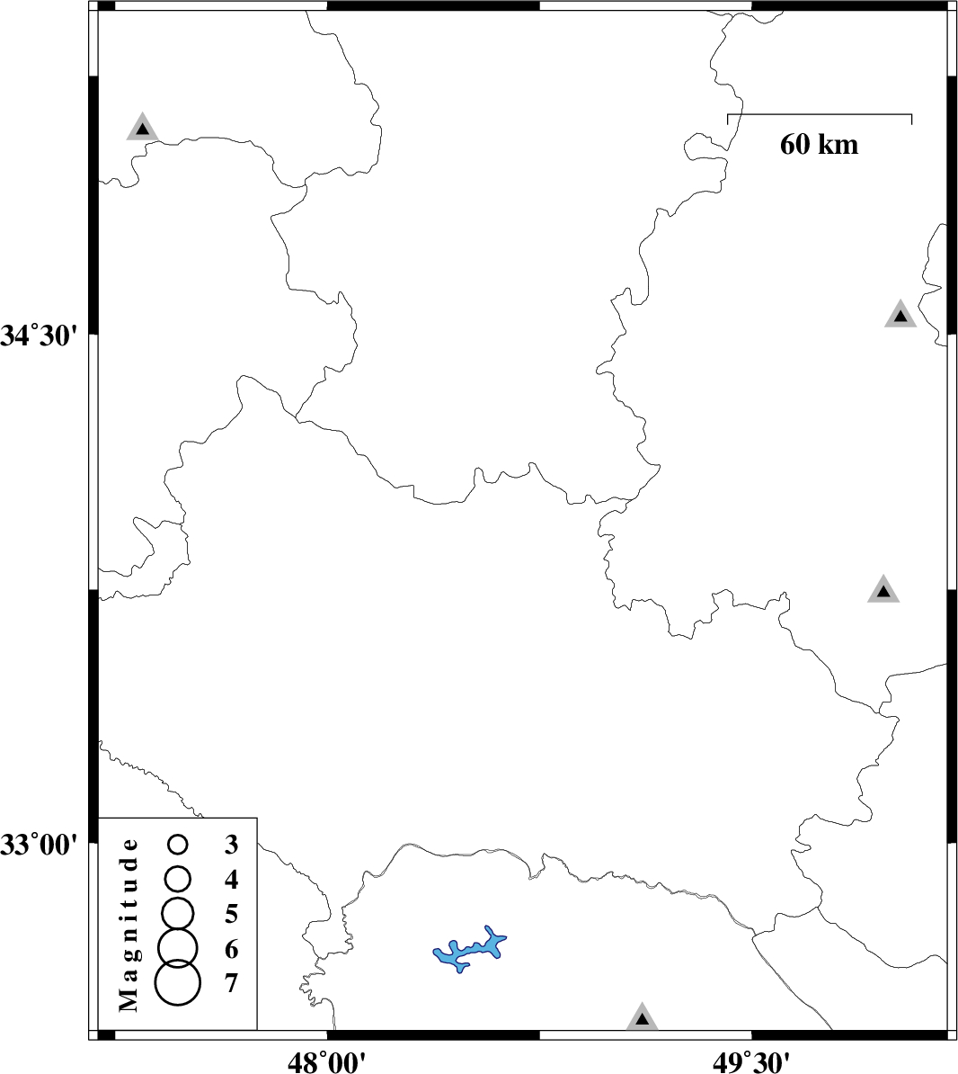 | 2007/10/17 | 02:33:33.0 | 06:03:33.0 | 33.94 | 48.69 | 15 | ML:2.9 | 7 km Borujerd, Lorestan Province |