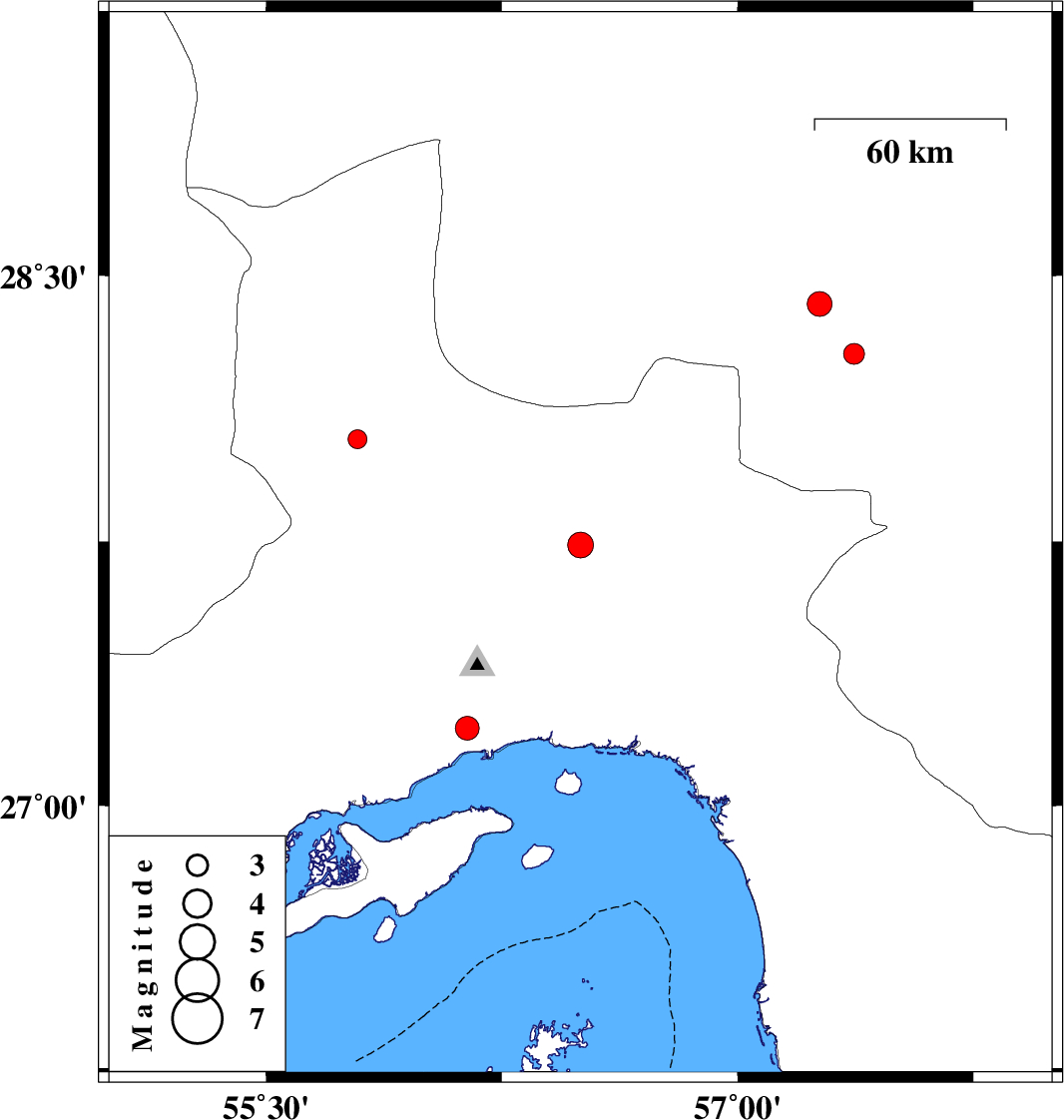 | 2007/10/10 | 03:53:33.7 | 07:23:33.7 | 27.22 | 56.14 | 8 | ML:3.4 | 14 km West of Bandar-e abbas, Hormozgan Province |