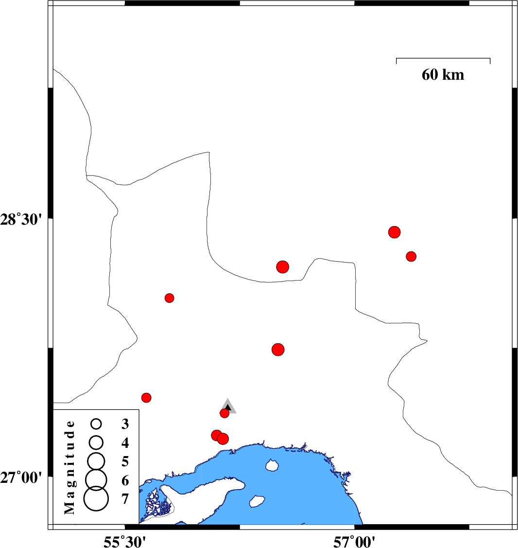 | 2007/10/03 | 05:06:15.3 | 08:36:15.3 | 27.37 | 56.15 | 14 | ML:2.7 | 23 km North-West of Bandar-e abbas, Hormozgan Province | ||