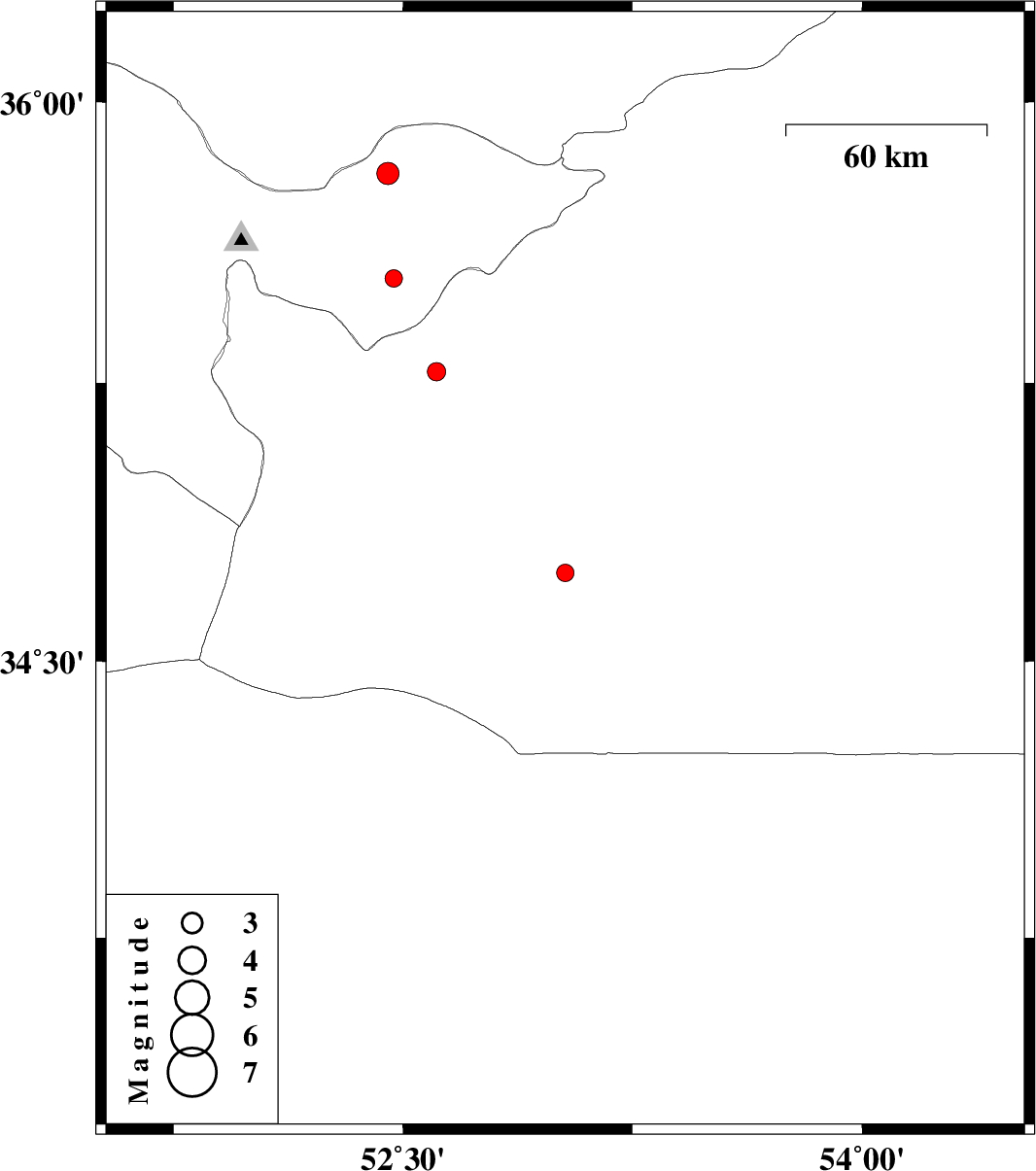 | 2007/10/19 | 16:43:35.9 | 20:13:35.9 | 35.28 | 52.61 | 6 | ML:2.7 | 25 km East of Garmsar, Semnan Province | ||